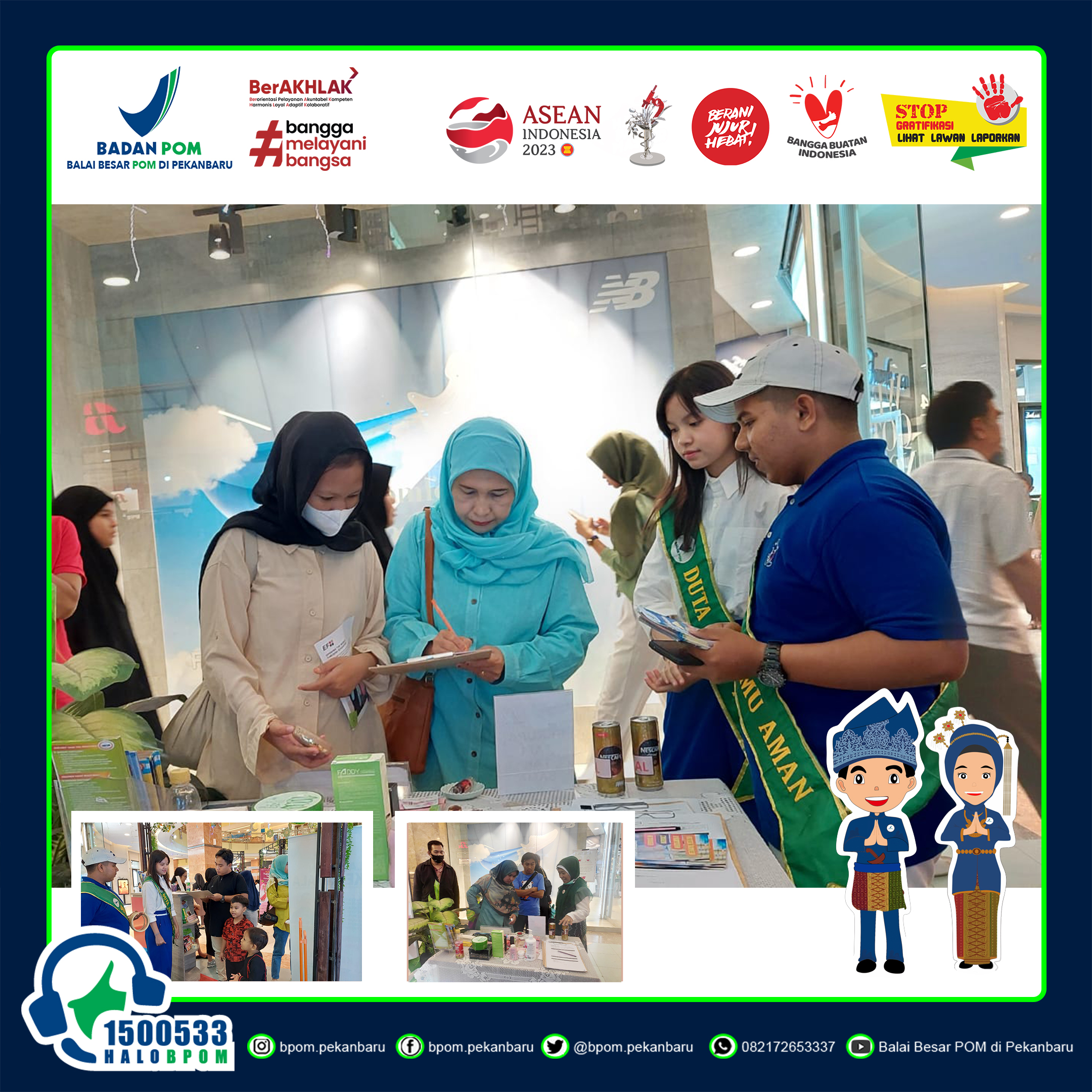 Pada pameran ini Balai Besar POM di Pekanbaru memberikan KIE secara langsung kepada masyarakat melalui penyebaran leaflet, penayangan contoh produk Obat dan Makanan yang tidak memenuhi ketentuan seperti produk illegal, mengandung bahan berbahaya maupun bahan kimia obat. Di samping itu juga disediakan beberapa game dengan hadiah menarik untuk memberi hiburan dan pendidikan kepada masyarakat