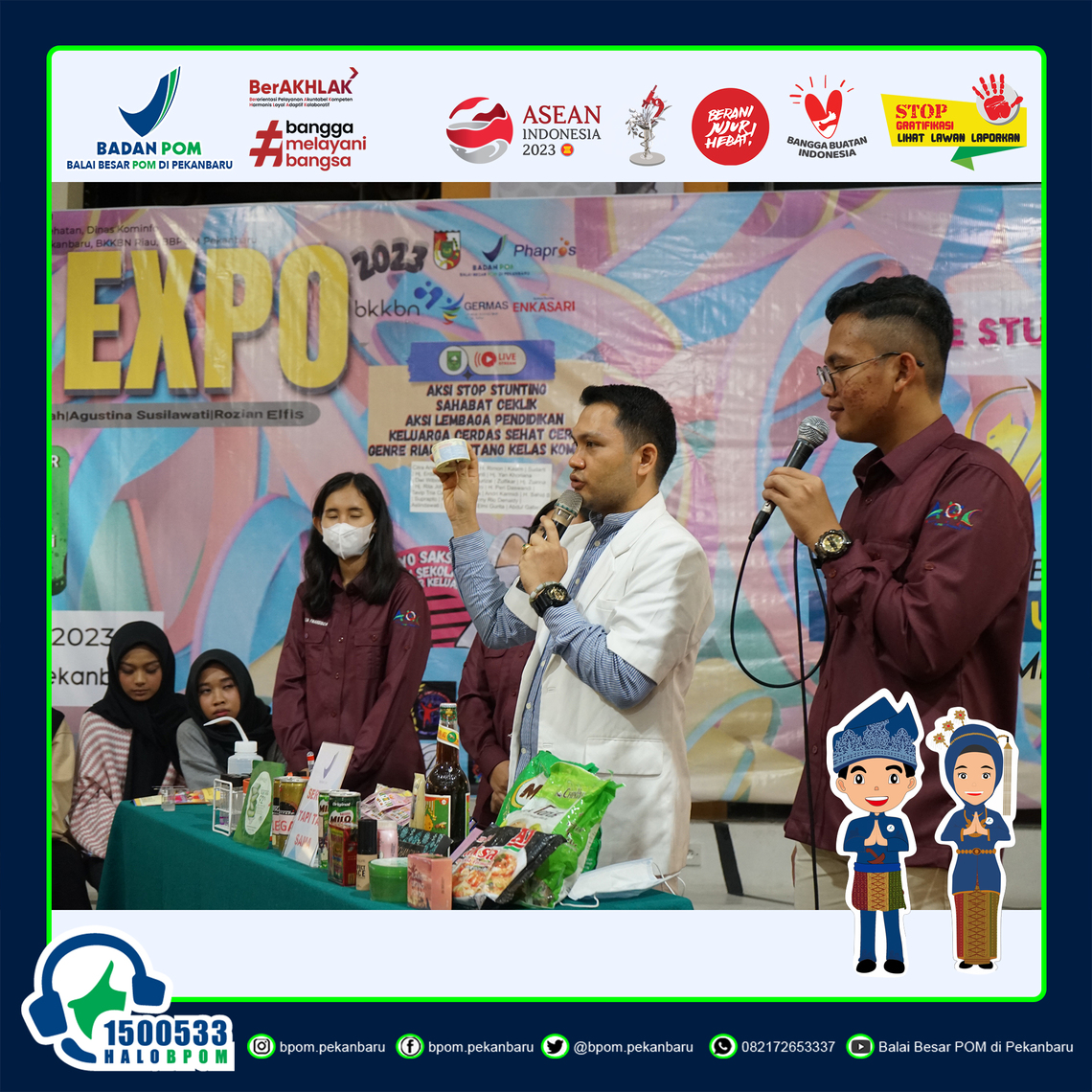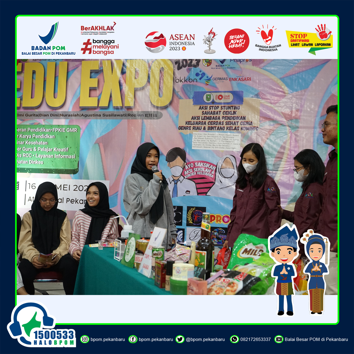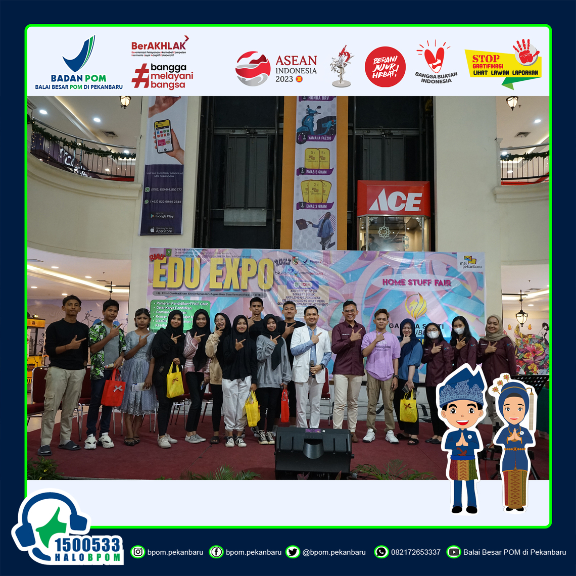 Tim Agen Perubahan BBPOM di Pekanbaru (Agent of Change) melakukan edukasi terkait obat dan makanan aman pada kegiatan Riau Edu Expo 2023 yang diselenggarakan oleh Pemerintah Daerah Provinsi Riau di Mall Pekanbaru pada Jumat,19 Mei 2023.