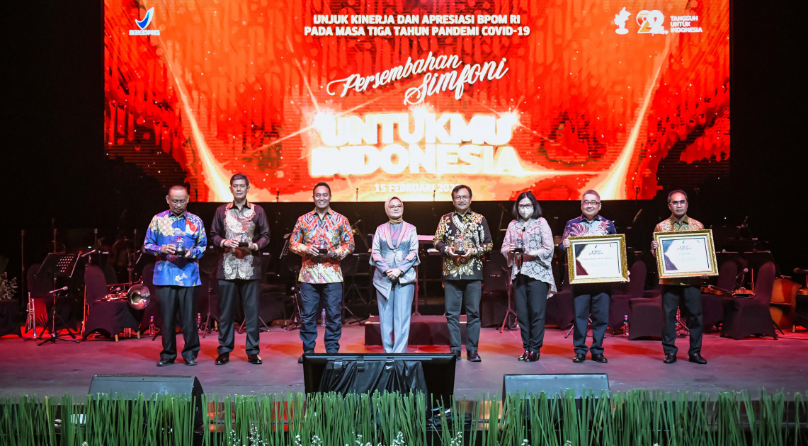 Dalam peringatan Unjuk Kinerja dan Apresiasi BPOM Pada Masa Tiga Tahun Pandemi COVID-19, BPOM menampilkan gelaran Persembahan Simfoni Untukmu Indonesia, Rabu (15/02/2023). Kepala BPOM RI, Penny K. Lukito tampil memberikan apresiasi dan penghargaan kepada lintas sektor baik dari sektor lembaga, pelaku usaha, maupun perorangan yang berkontribusi dalam membangun kemandirian bangsa di bidang obat dan makanan, termasuk penanganan COVID-19.