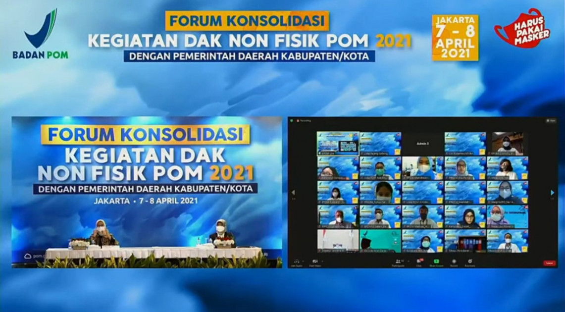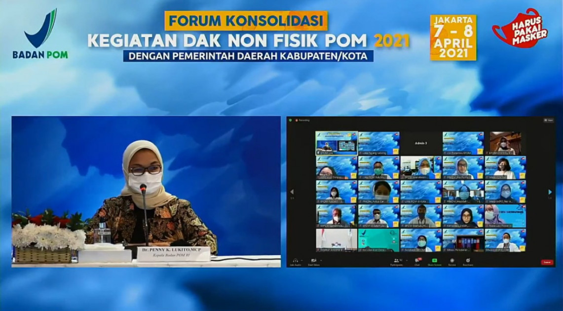 Jakarta – Dalam upaya menggalang komitmen bersama dan mengonsolidasikan upaya dalam pelaksanaan pengawasan obat dan makanan yang efektif sesuai tugas, fungsi, dan kewenangan Pemerintah Daerah dan Kabupaten/Kota, Badan POM melaksanakan Forum Konsolidasi Kegiatan Dana Alokasi Khusus Non-Fisik Pengawasan Obat dan Makanan (DAK Non-Fisik POM) 2021 dengan Pemerintah Daerah Kabupaten/Kota. Forum tersebut dihadiri oleh Direktur Jenderal Bina Pembangunan Daerah, Kementerian Dalam Negeri, Hari Nur Cahya Murni; Deputi Bidang Pembangunan Manusia, Masyarakat, dan Kebudayaan, Kementerian Perencanaan Pembangunan Nasional/Bappenas, Subandi; Direktur Dana Transfer Khusus, Direktorat Jenderal Perimbangan, Kementerian Keuangan, Putut Hari Satyaka; serta 419 perwakilan Pemerintah Kabupaten/Kota penerima DAK Non-Fisik POM Tahun Anggaran 2021 secara luring dan daring, Rabu (07/04).