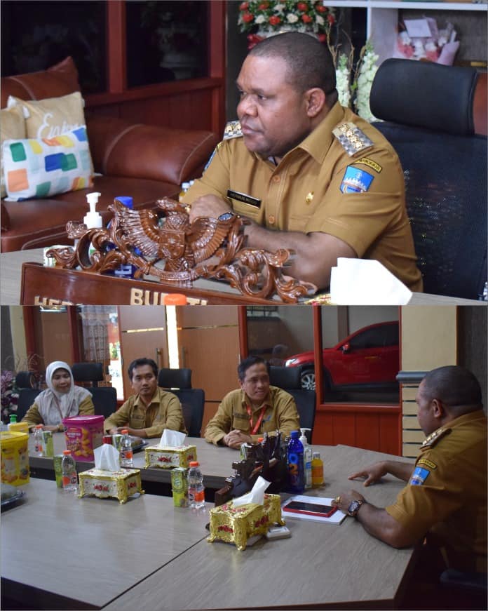 Manokwari, 02 Mei 2023 Kepala Balai POM di Manokwari, Musthofa Anwari, S.Si., Apt melakukan audiensi dan silahturahmi dengan Bupati Manokwari Hermus Indou S.IP., M.H di Kediaman dinas Bupati dalam rangka perkuat kerja sama di bidang Obat dan Makanan