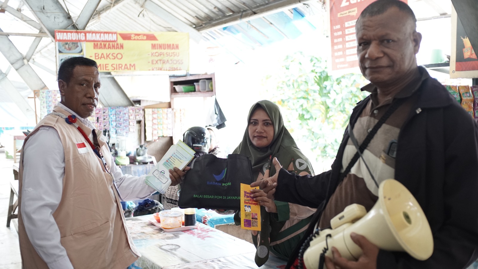 Dalam kolaborasi dengan petugas pengelola pasar, Tim BBPOM di Jayapura dengan antusias menyebarkan informasi penting kepada pedagang dan pengunjung pasar. Mereka berfokus pada topik keamanan pangan, bahaya yang terkait dengan 4 Bahan Berbahaya yang sering disalahgunakan pada pangan, serta pentingnya melakukan Cek KLIK sebelum berbelanja dan memanfaatkan Aplikasi BPOM Mobile.