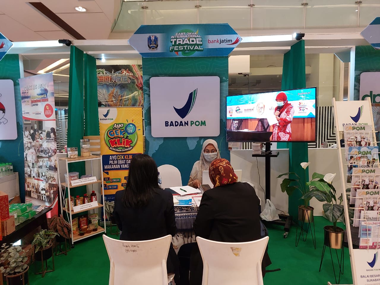Kehadiran Balai Besar Pengawas Obat dan Makanan (BBPOM) di Surabaya pada pameran ini merupakan bagian dari kontribusi Badan POM dalam meningkatkan kinerja perdagangan luar negeri di Jawa Timur, di mana pelaku ekspor dapat memperoleh informasi terkait regulasi dan kebijakan perdagangan luar negeri seperti legalisasi produk dan pengurusan dokumen ekspor yang dibutuhkan sesuai kriteria yang dipersyaratkan negara tujuan ekspor secara langsung di lokasi pameran.