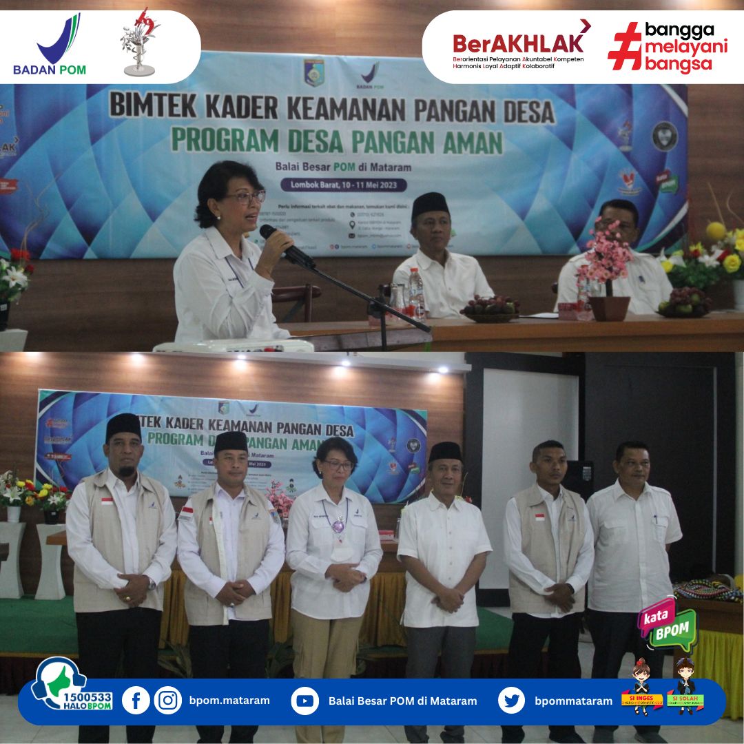 Dalam laporannya Kepala BBPOM di Mataram Dra. I Gusti Ayu Adhi Aryapatni, Apt menyampaikan bahwa total desa yang telah diintervensi di Kabupaten Lombok Barat 2014 – 2019 sebanyak 45 desa dari 113 desa (39,82%). Jumlah Tim Keamanan Pangan Desa (TKPD) sebanyak 100 orang, Kader Keamanan Pangan Desa (KKPD) sebanyak 116 orang dan komunitas yang sudah terintervensi sebanyak 200 orang. Tahun 2023 Kabupaten Lombok Barat menjadi salah satu Kabupaten yang diintervensi Program Desa Pangan Aman, Pasar Pangan Aman berbasis Komunitas dan Sekolah dengan PJAS Aman dengan desa yang diintervensi yaitu Desa Penimbung Kecamatan Gunungsari, Desa Cendi Manik Kecamatan Sekotong dan Desa Batu Kumbung Kecamatan Lingsar.