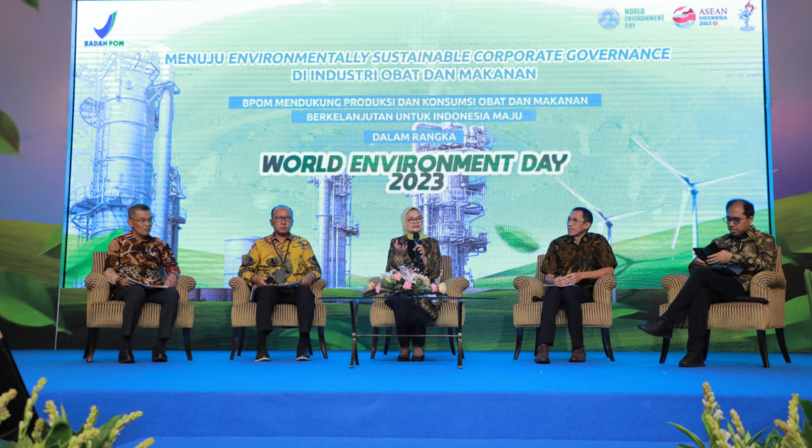 Jakarta - Sebagai bentuk dukungan produksi dan konsumsi obat dan makanan berkelanjutan, BPOM menggelar forum “Menuju Environmentally Sustainable Corporate Governance di Industri Obat dan Makanan” pada Senin (17/07/2023). Tema yang diangkat adalah BPOM Mendukung Produksi dan Konsumsi Obat dan Makanan Berkelanjutan untuk Indonesia Maju dalam rangka world environment day (WED). Kegiatan ini diselenggarakan secara hybrid dan juga di-relay oleh 73 unit pelaksana teknis (UPT) BPOM di seluruh Indonesia.