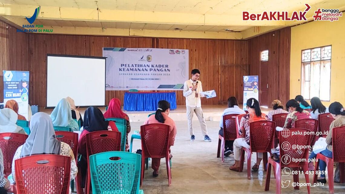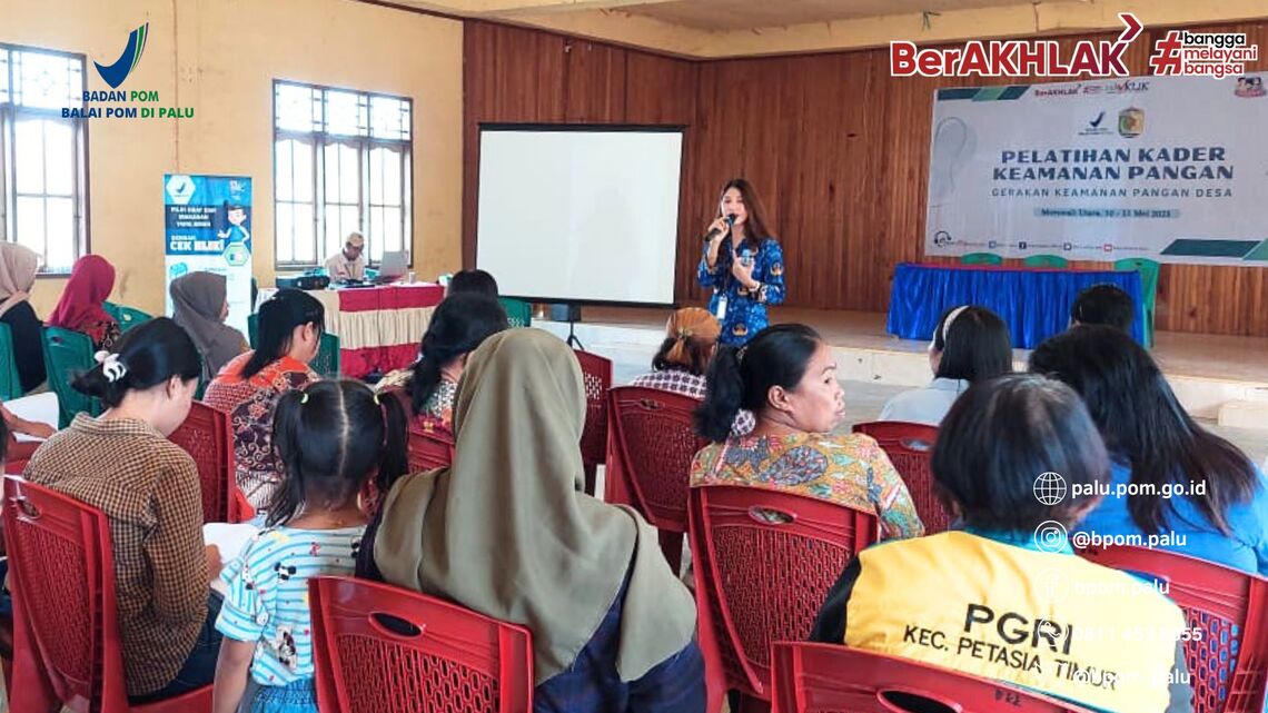 Morowali Utara - Rabu-Kamis (10-11/05/2023) Balai POM di Palu mengadakan Pelatihan Kader Keamanan Pangan yang diikuti oleh Kader Keamanan Pangan dari 2 desa yaitu Desa Bunta dan Desa Tompira. Kegiatan ini adalah rangkaian dari Program Prioritas Nasional Keamanan Pangan Terpadu Gerakan Keamanan Pangan Desa.
