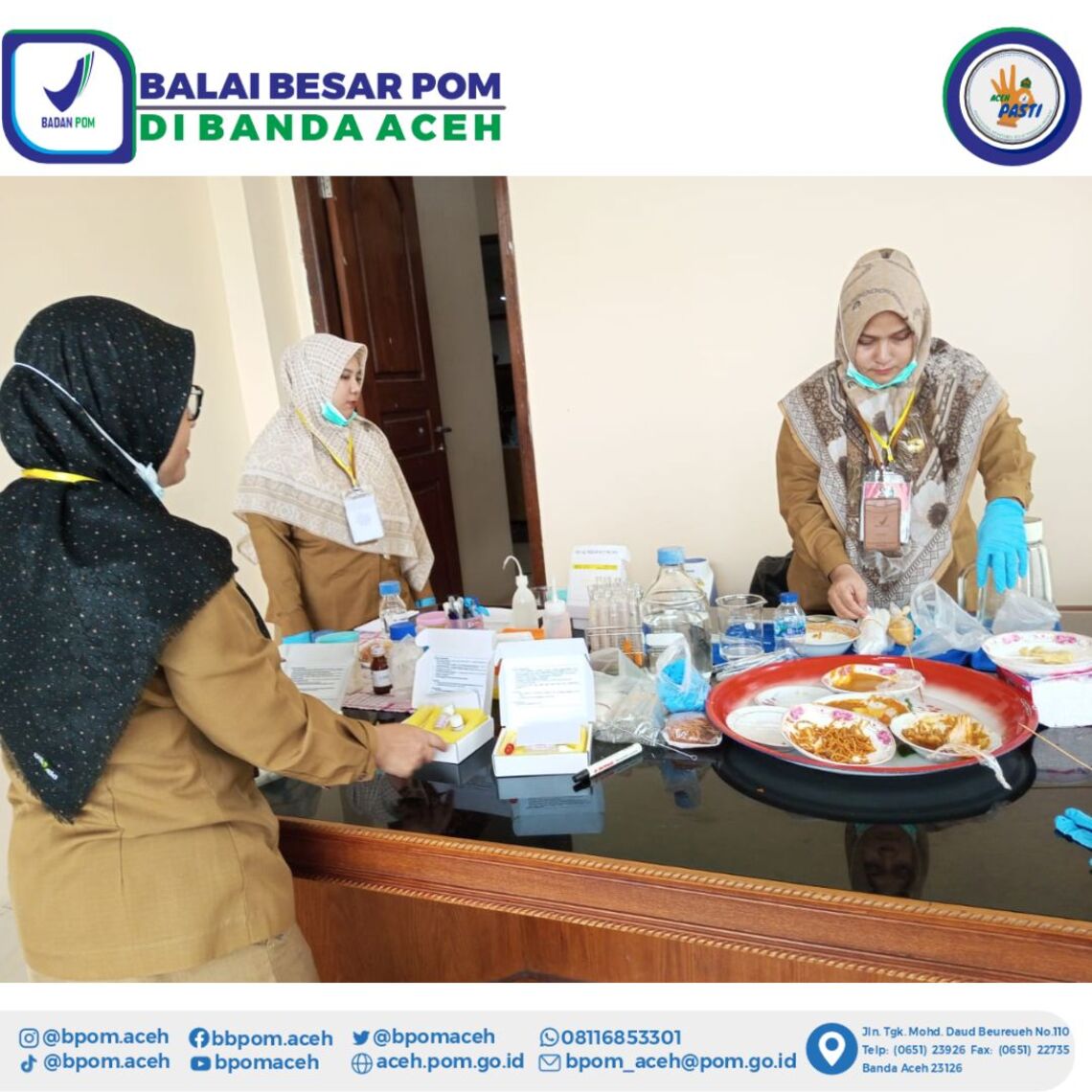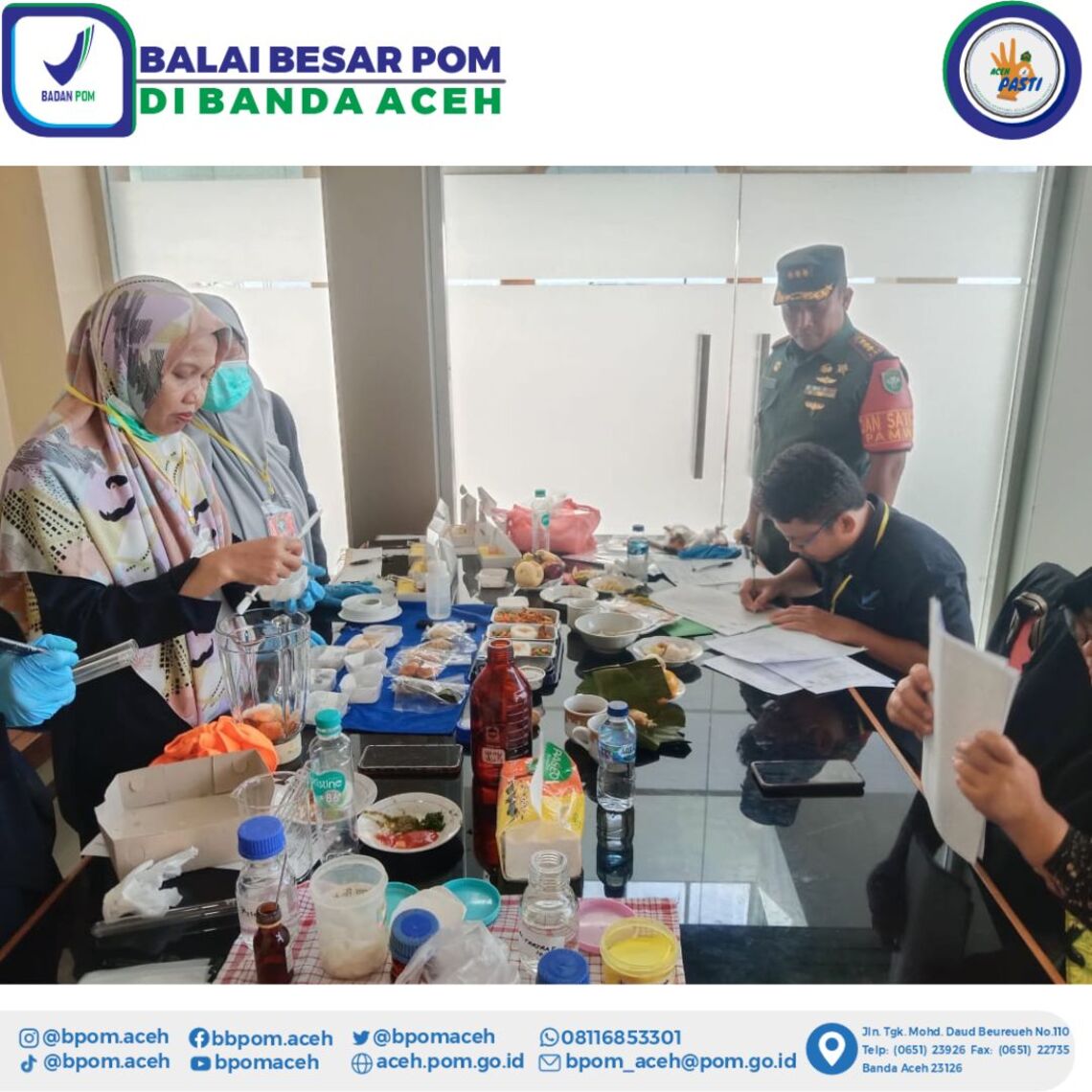 Pengamanan ketersediaan makanan bagi kepresidenan (Food Security) telah menjadi tugas rutin Badan POM selama ini. Diawali pada Februari lalu, Presiden RI Joko Widodo kembali mengunjungi Aceh kedua kalinya pada 27 Juni 2023. Agenda Jokowi adalah menghadiri Acara Pelaksanaan Rekomendasi Penyelesaian non Yudisial Pelanggaran HAM Indonesia yang bertempat di Rumoh Geudong Kabupaten Pidie.