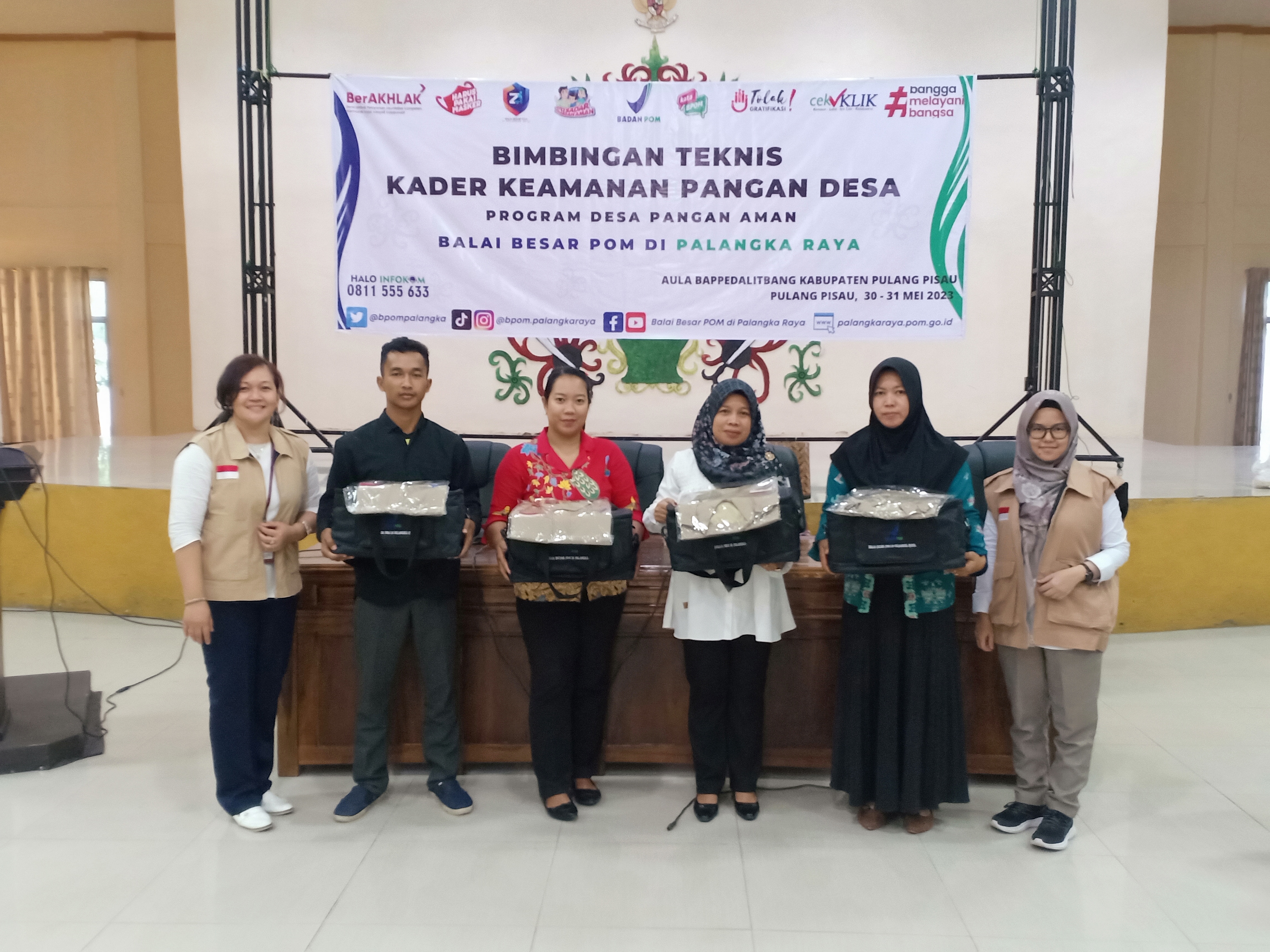 Pada kesempatan ini, BBPOM di Palangka Raya juga memberikan paket Rapid test kit untuk 4 (empat) pengujian Bahan Berbahaya (Boraks, Formalin, Rhodamin B dan Methanyl Yellow) untuk membantu pelaksanaan Program Desa Pangan Aman ini di masing-masing desa. Kegiatan ini ditutup dengan penyerahan secara simbolis sertifikat Kader Keamanan Pangan Kabupaten Pulang Pisau.
