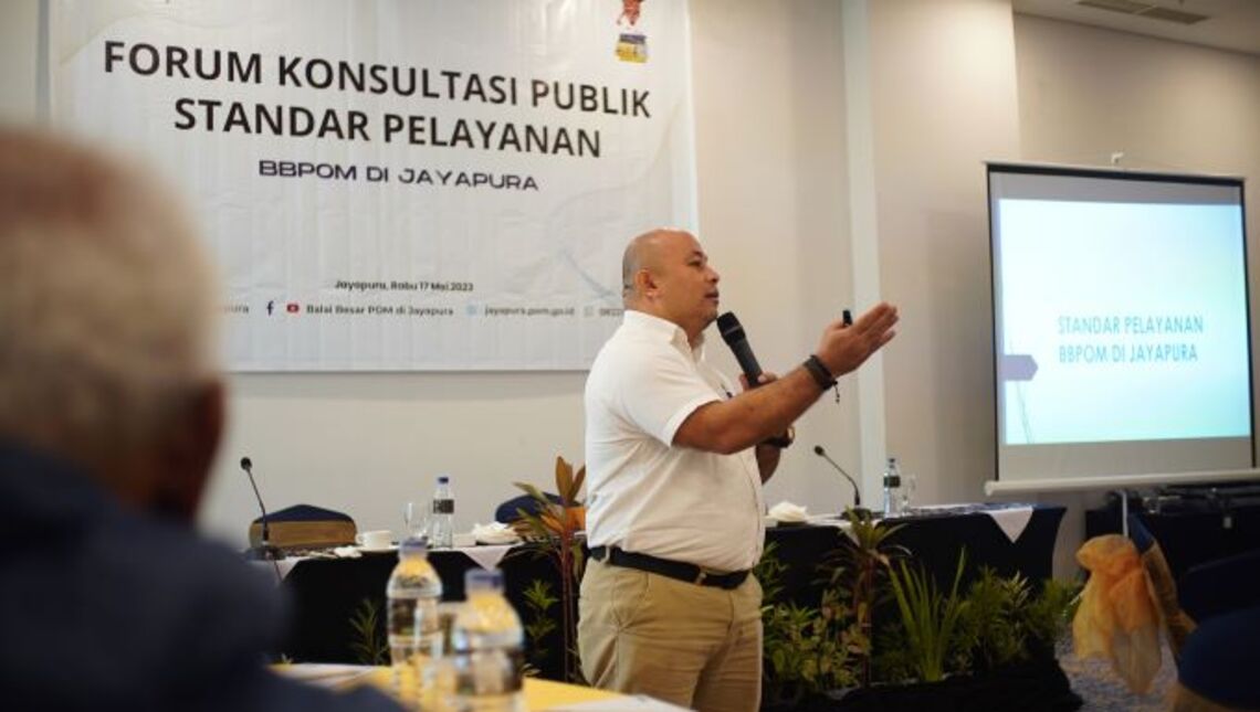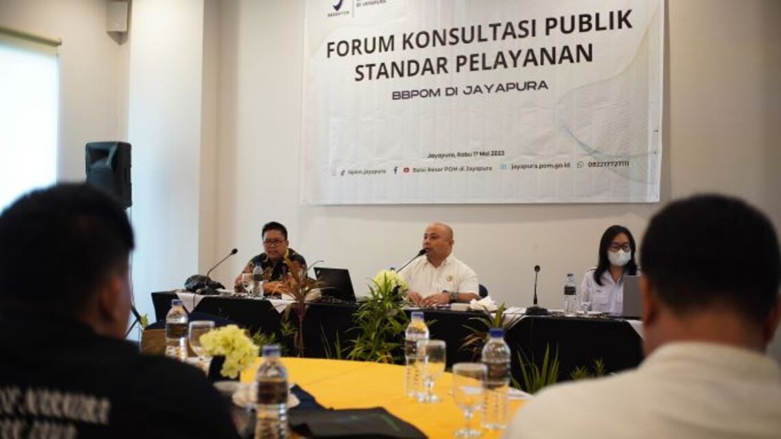 Pada tanggal 17 Mei 2023, telah dilaksanakan Kegiatan Forum Konsultasi Publik Standar Pelayanan Balai Besar POM di Jayapura. Kegiatan ini bertujuan untuk melakukan pembahasan dan mendengarkan masukan terhadap Rancangan Standar Pelayanan Balai Besar POM di Jayapura tahun 2023.