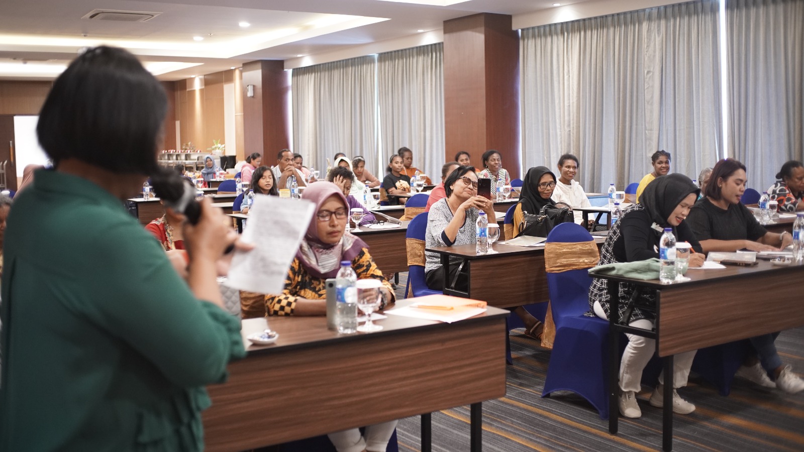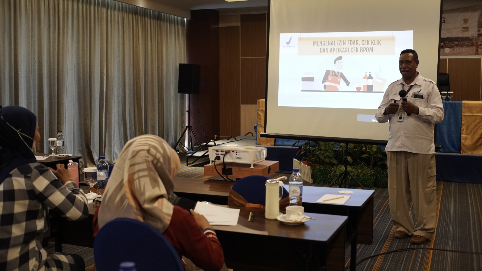Kegiatan penyuluhan ini melibatkan tiga narasumber yang berasal dari BBPOM Jayapura. Meriza Moona Andaryn, SKM, memberikan materi mengenai pentingnya keamanan pangan dan pengenalan berbagai bahan berbahaya yang sering ditemui dalam produk makanan. Sementara itu, Nugroho Budi Santoso, S.Farm., Apt, menyampaikan materi tentang 5 Kunci Keamanan Pangan Ritel, yang mencakup aspek-aspek penting yang harus diperhatikan oleh pedagang dalam menjaga keamanan produk pangan yang dijual. Dalam sesi berikutnya, Alex Noach, S.Si, memberikan penjelasan tentang pentingnya mengenal izin edar produk pangan dan Cek KLIK (Cek Kemasan-Label-Izin Edar-Kedaluwarsa)