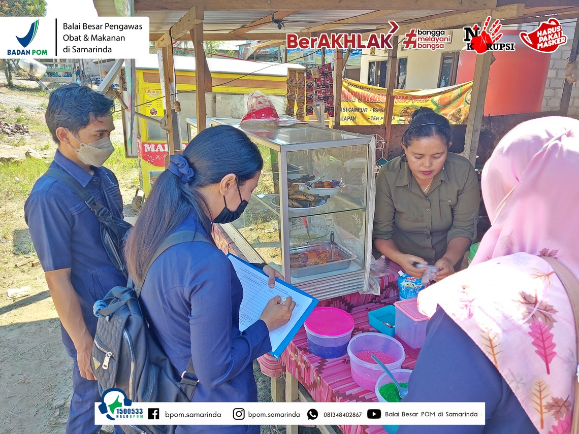 Selain itu petugas BBPOM di Samarinda memberian KIE kepada Komunitas Pelaku Usaha Pangan Siap Saji, Ritel dan Pelaku Usaha Pangan Olahan dengan pemberian brosur tentang Keamanan Pangan. Dari hasil pengujian Rapid Test Kit didapatkan 2 (dua) sampel Tidak Memenuhi Syarat (TMS) Boraks dan Rhodamin B yang akan diuji lanjut di laboratorium Balai Besar POM di Samarinda.