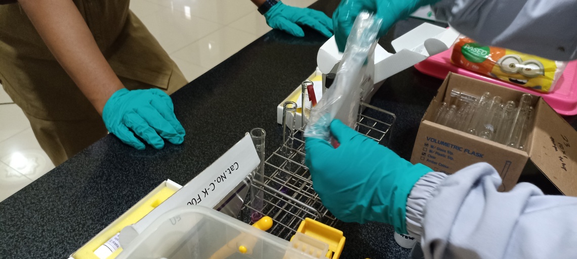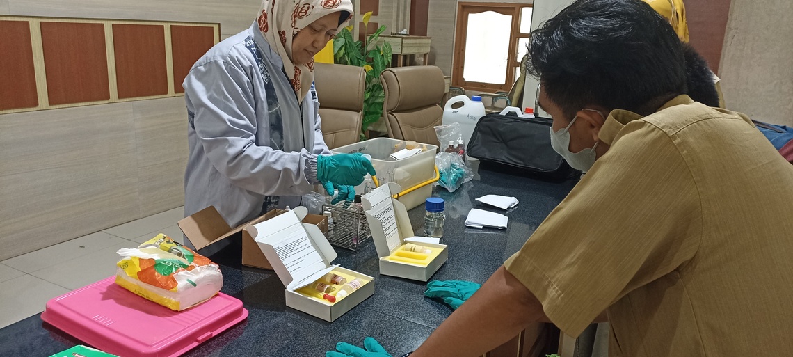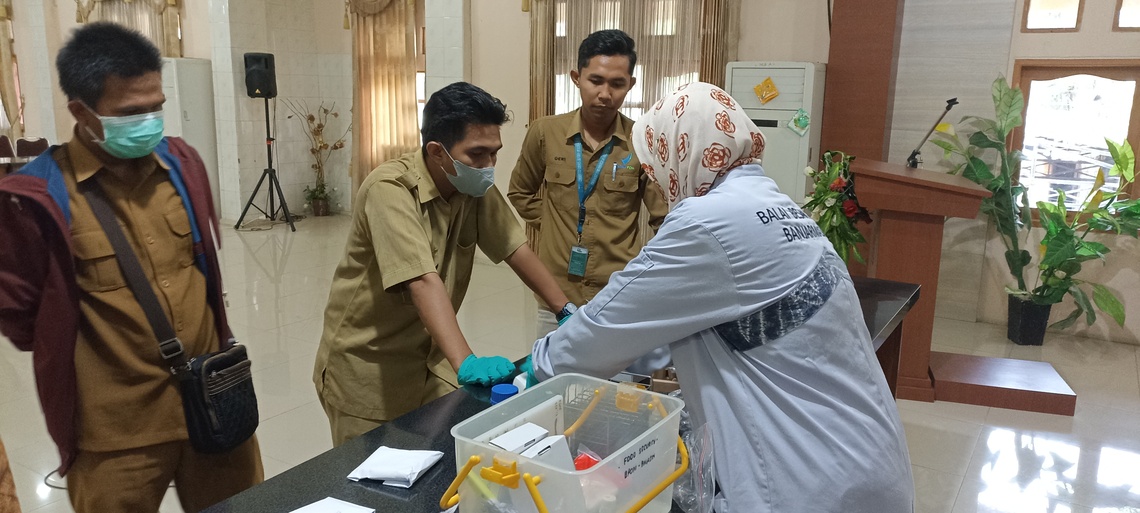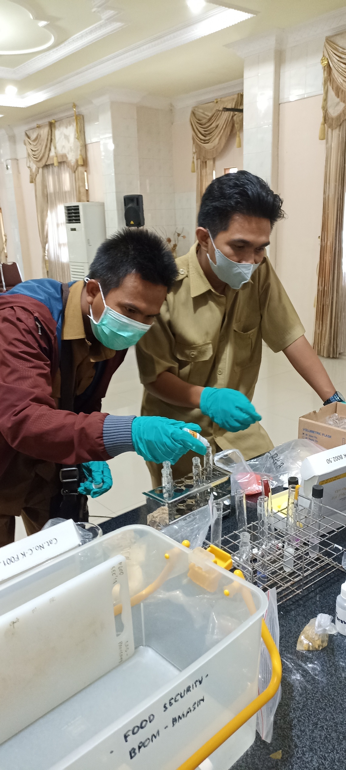 Petugas Laboratorium Balai Besar POM di Banjarmasin memberikan bimbingan teknis sehingga petugas pengawas pasar dapat melakukan pengawasan terhadap bahan berbahaya, bahan pangan maupun produk pangan yang diduga mengandung bahan berbahaya di pasar yang dikelolanya melalui pengambilan contoh dan pengujian cepat menggunakan test kit.