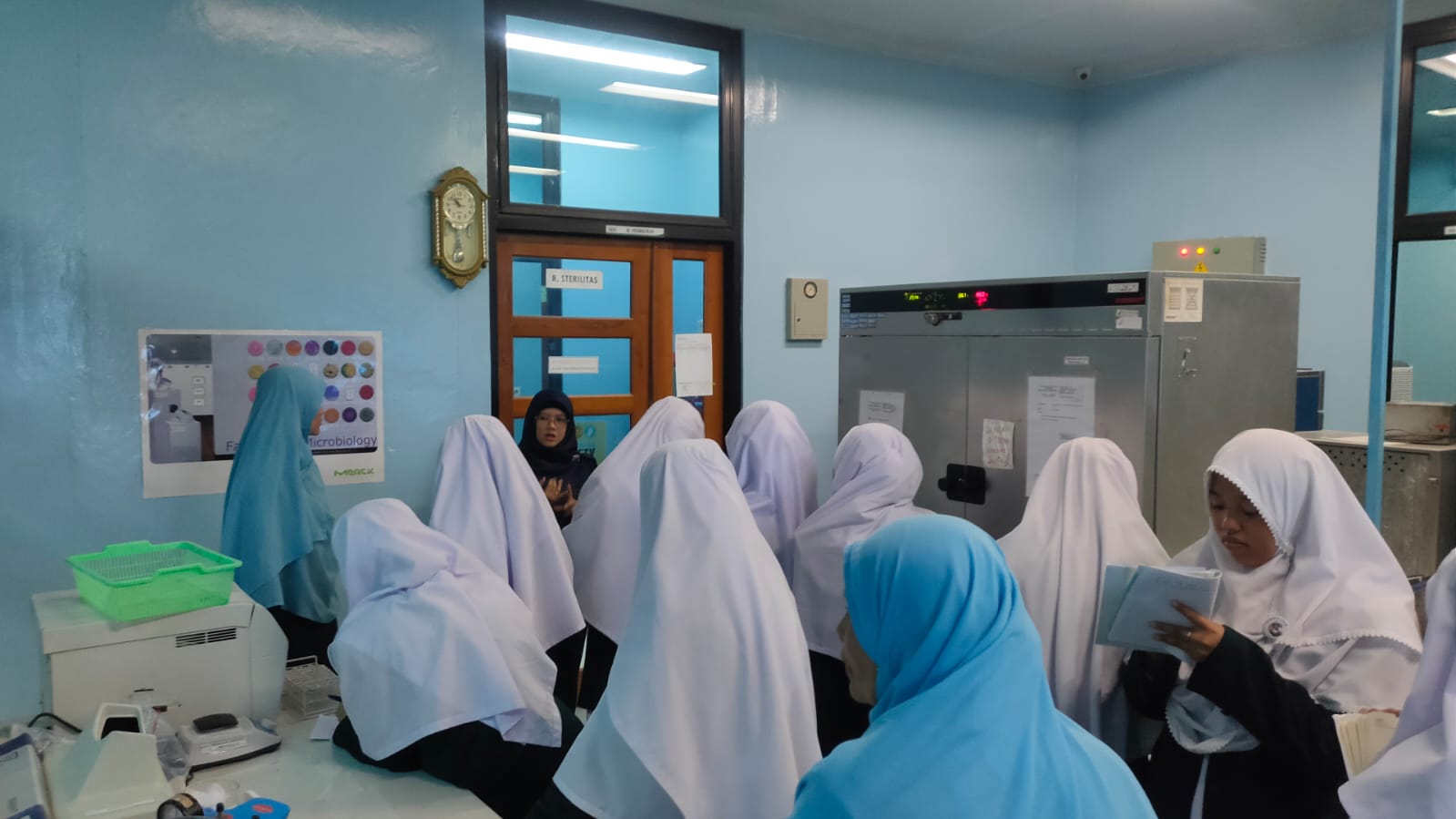 Mengawali kegiatan kunjungan, para siswa diberi kesempatan untuk mengunjungi laboratorium pengujian kimia produk obat, kosmetik, obat tradisional-suplemen kesehatan, dan pangan serta laboratorium pengujian mikrobiologi yang didampingi oleh penanggungjawab laboratorium. Selanjutnya Azfrianty selaku Koordinator Mutu Laboratorium BBPOM di Padang, memberikan paparan tentang peran BBPOM di Padang sebagai UPT Badan POM, dalam pengawasan Obat dan Makanan di wilayah Sumatera Barat.