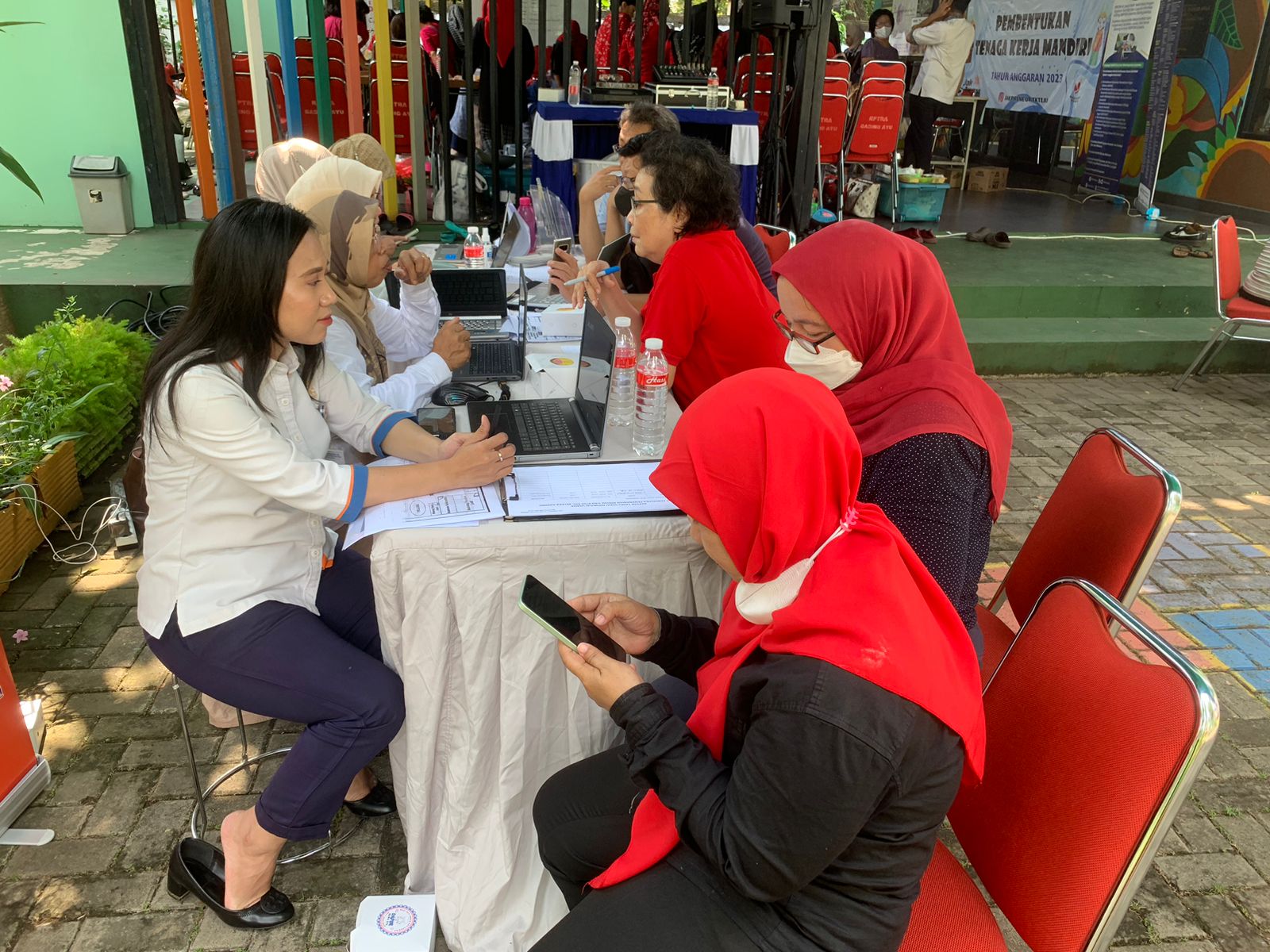 Kegiatan Pembentukan Tenaga Kerja Mandiri diisi dengan kegiatan sosialisasi terkait izin edar pangan olahan BPOM RI MD dan PIRT yang disampaikan Balai Besar POM di Jakarta serta sosialisasi terkait NIB oleh Ibu Ronita selaku Kepala UP PMPTSP Kecamatan Kelapa Gading. Setelah itu kegiatan dilanjutkan dengan layanan konsultasi di booth masing-masing serta pelatihan pembuatan aneka kue. Total peserta yang dilayani pada kegiatan adalah 48 pelaku usaha.