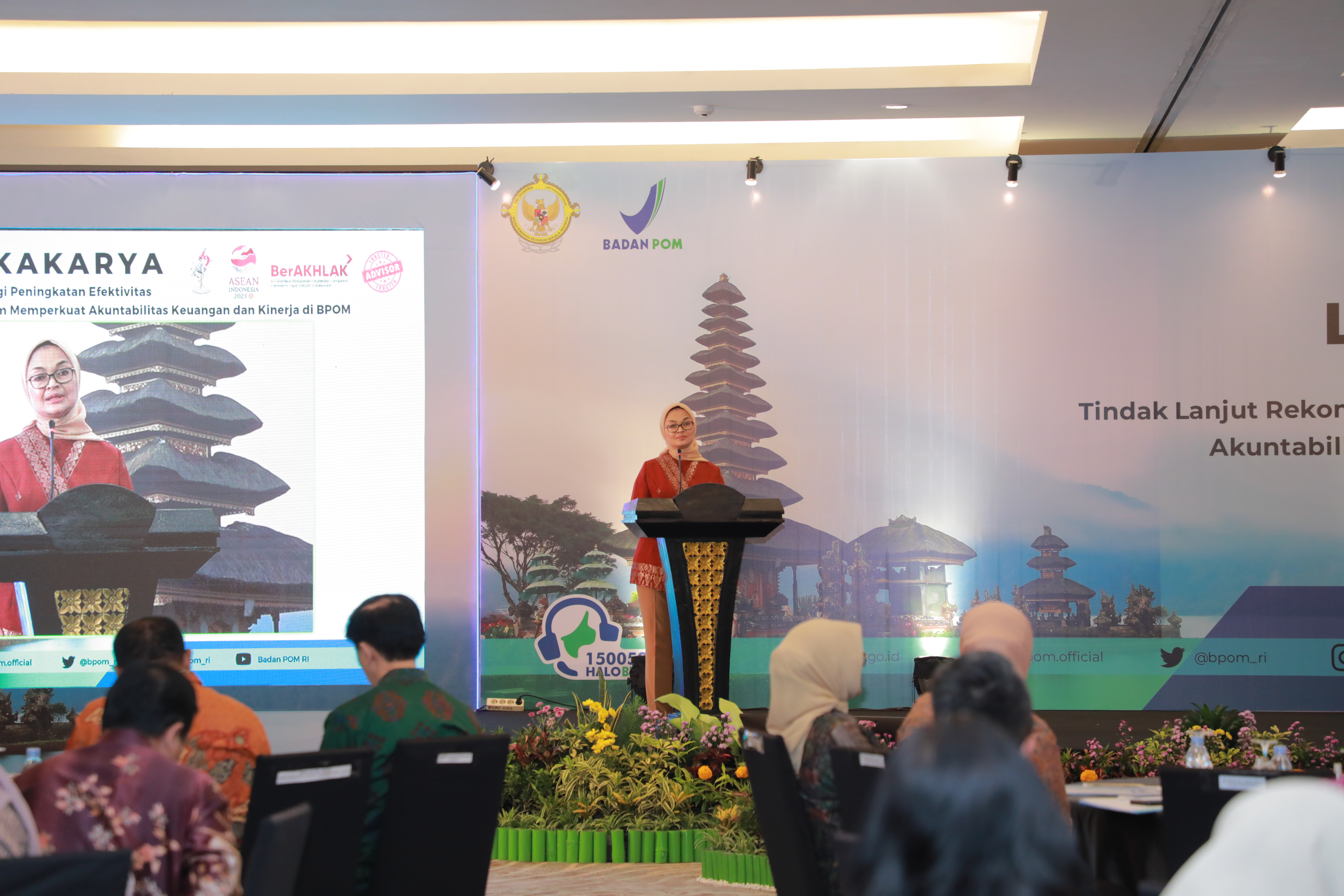 Bali – BPOM gelar Lokakarya "Strategi Peningkatan Efektivitas Tindak Lanjut Rekomendasi BPK RI dalam Memperkuat Akuntabilitas Keuangan dan Kinerja di BPOM", Kamis (06/07/2023). Kegiatan ini dilakukan sebagai langkah membangun kesepahaman antara pemeriksa Badan Pemeriksa Keuangan (BPK) dan pimpinan unit kerja BPOM terhadap temuan rekomendasi dan tindak lanjut hasil pemeriksaan dari BPK RI. Selain itu, juga dimaksudkan untuk meningkatkan akuntabilitas kinerja menuju good governance dan clean government yang bermuara pada tata kelola pemerintahan yang baik, serta sebagai tindak lanjut hasil pemeriksaan eksternal oleh BPK untuk memastikan tidak adanya temuan berulang.