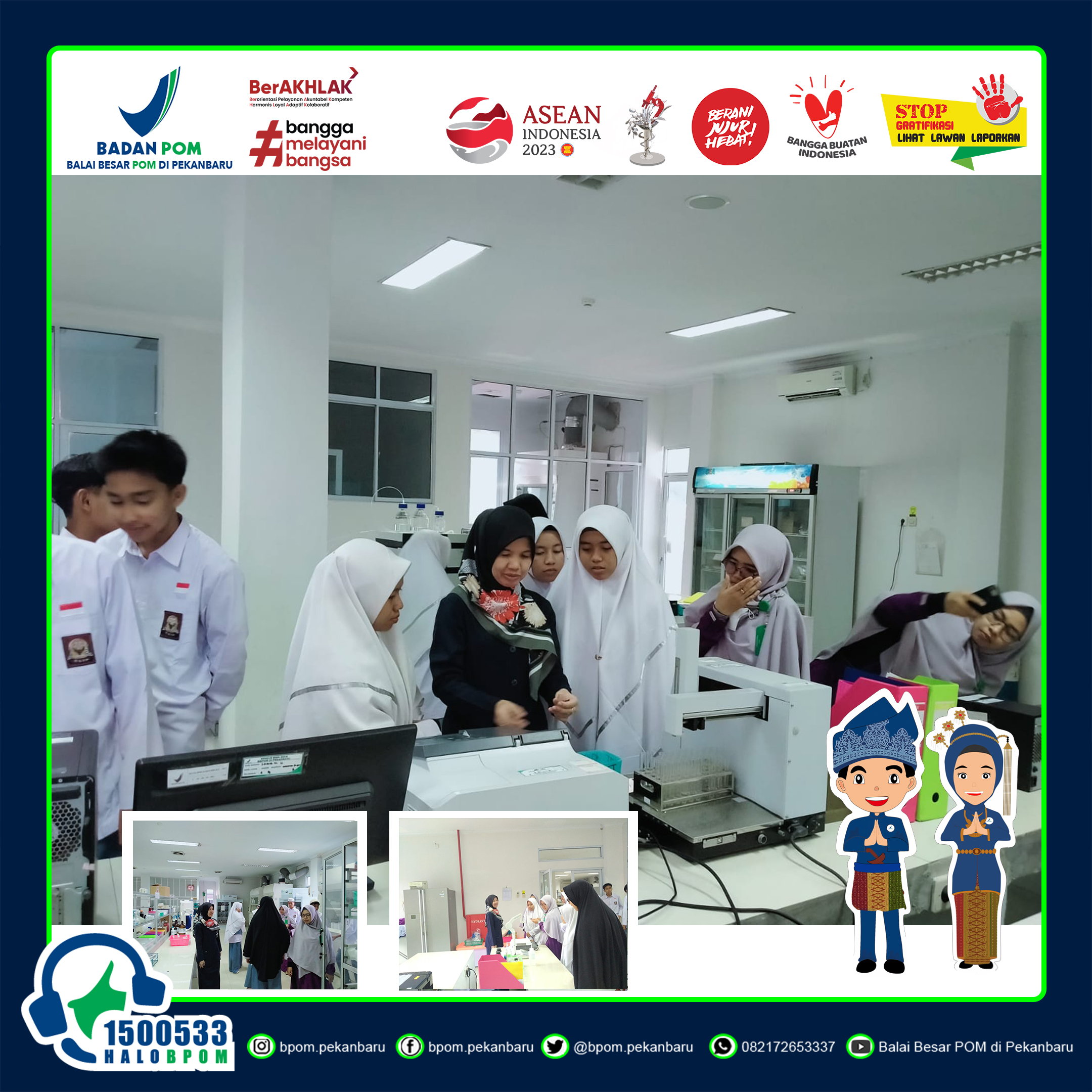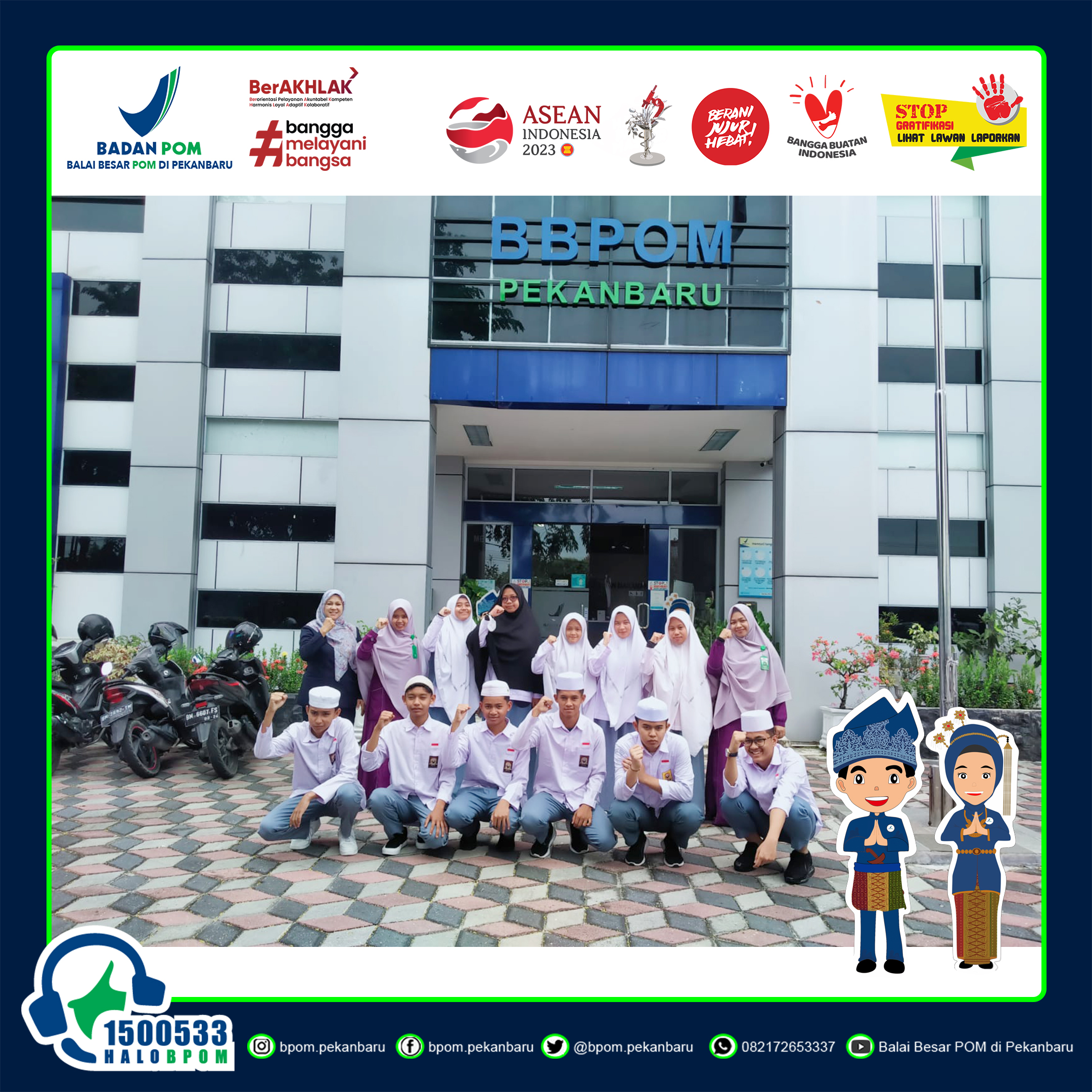 Balai Besar POM di Pekanbaru kembali menunjukkan kepedulian kepada dunia pendidikan dengan menerima kedatangan siswa dan guru MA Arsyad. Kunjungan ini merupakan salah satu program pengkayaan peserta didik agar memperoleh pengetahuan dan pengalaman dalam bidang tertentu, yang dilakukan dalam bentuk field trip oleh MA Arsyad.