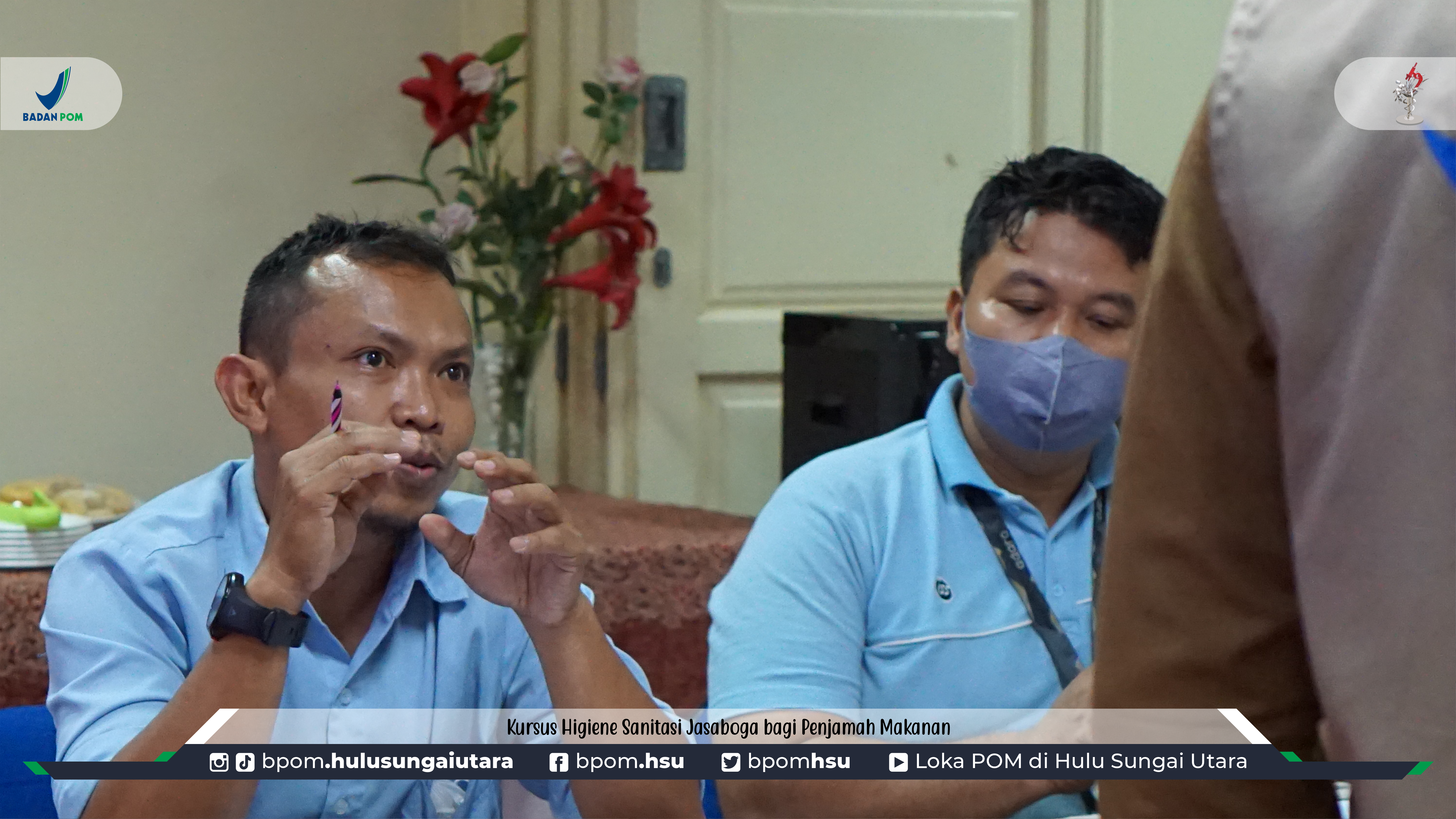 Narasumber utama dalam kegiatan ini adalah Bambang Hery Purwanto, S.Farm., Apt, Kepala Loka POM di Kabupaten Hulu Sungai Utara. Dalam materi yang disampaikannya, beliau membahas mengenai perundang-undangan higiene sanitasi, label, serta bahan cemaran pangan. Para peserta diharapkan memperoleh pemahaman yang mendalam mengenai pentingnya menjaga kebersihan dan kualitas makanan dalam jasa boga.