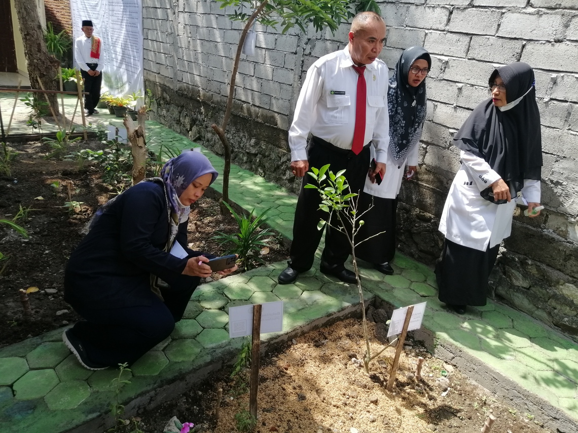 Kegiatan diawali dengan pemeriksaan fasilitas yang ada di MTsN 3 Mataram seperti kantin sekolah, ruangan UKS, toilet, perpustakaan, ruang kelas, tempat sampah, dan fasilitas lainnya. Selain itu dilakukan juga kunjungan ke Biology Garden yang terletak di halaman belakang sekolah yang ditanami berbagai tanaman obat keluarga dan tanaman dapur hidup yang merupakan salah satu inovasi dari MTsN 3 Mataram. Kegiatan dilanjutkan dengan pemeriksaan dokumen implementasi PJAS aman dan wawancara dengan kader keamanan pangan sekolah yang berasal dari pengurus kantin sekolah,tenaga pengajar dan siswa.