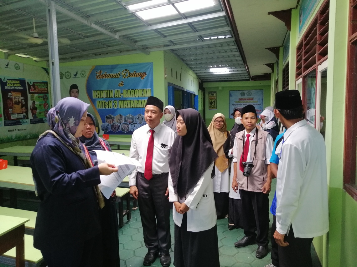Mataram– Senin (29/05/2023) Tim Juri dari Direktorat Pemberdayaan Masyarakat dan Pelaku Usaha Pangan Olahan sebagai perwakilan Badan POM RI melakukan tahapan verifikasi lapangan dalam rangka Lomba Pangan Jajanan Anak Sekolah (PJAS) Aman tahun 2023 bertempat di MTsN 3 Mataram. Lomba Sekolah dengan Pangan Jajanan Anak Sekolah (PJAS) Aman ini merupakan lomba yang diselenggarakan oleh Badan POM RI sebagai apresiasi kepada sekolah yang berkomitmen mewujudkan pangan jajanan sekolah yang aman. Dengan adanya lomba ini diharapkan dapat memotivasi komunitas sekolah untuk ikut serta mewujudkan keamanan pangan di sekolah. Verifikasi lapangan merupakan tahap akhir penilaian yang dilaksanakan pada sekolah yang telah lolos tahap penilaian dokumen profil dan implementasi PJAS aman, serta tahapan wawancara yang telah dilaksanakan secara daring.