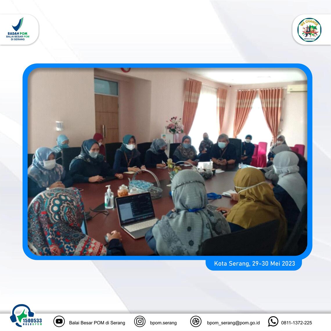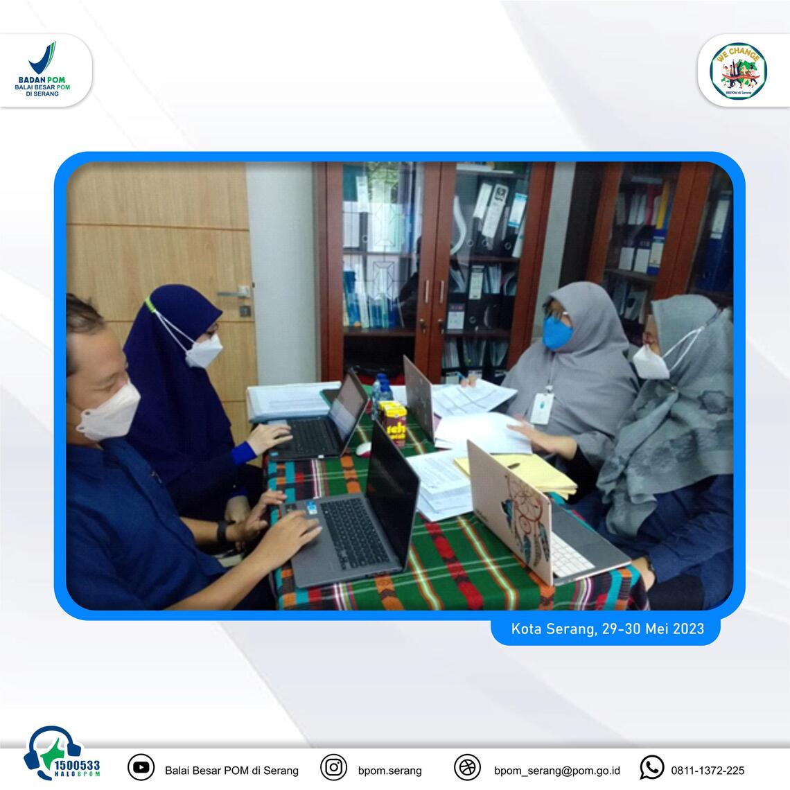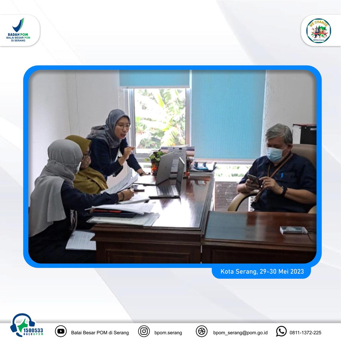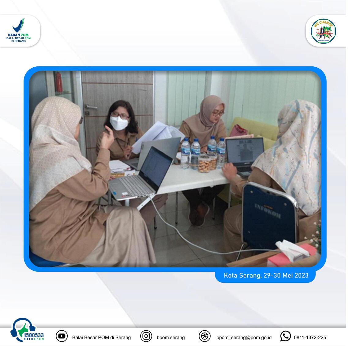 Dalam rangka meningkatkan efektifitas penerapan Sistem Manajemen Mutu ISO 9001:2015 yang terintegrasi dengan pemantauan Sistem Pengendalian Intern Pemerintah (SPIP) dalam kerangka Manajemen Resiko dan Sistem Manajemen Laboratorium SNI ISO/IEC 17025:2017 , BBPOM di Serang kembali melaksanakan Audit Internal Sistem Manajemen Mutu pada Senin-Selasa (29-30/05/ 2023).