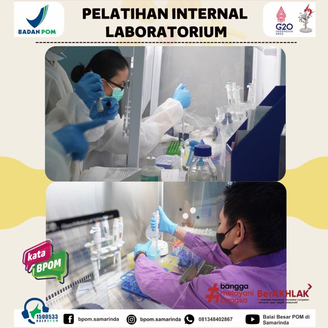 Balai Besar POM di Samarinda berkomitmen untuk terus meningkatkan kompetensi pegawai, salah satu caranya adalah dengan memberikan berbagai macam Pelatihan kepada seluruh personel Laboratorium. Sebagai perwujudan komitmen tersebut, Balai Besar POM di Samarinda melakukan kegiatan Pelatihan Internal Laboratorium Biologi Molekuler.