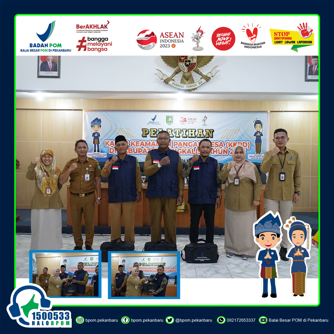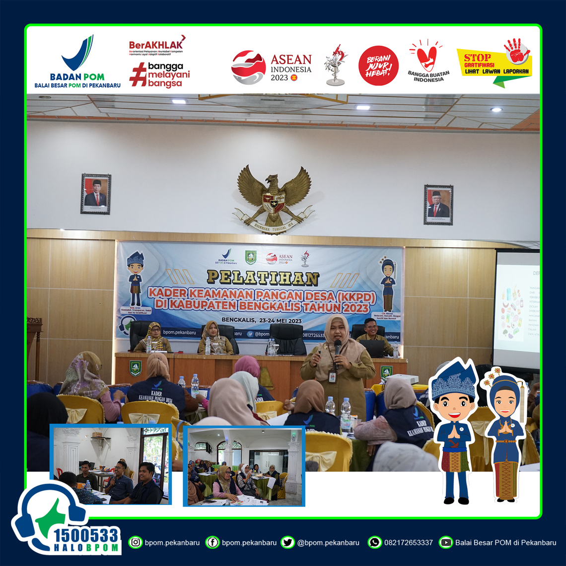 Selasa-Rabu, 23-24 Mei 2023, BBPOM di Pekanbaru melaksanakan kegiatan Pelatihan Kader Keamanan Pangan Desa (KKPD) di Kabupaten Bengkalis yang berlangsung di Ruang Pertemuan Gedung Daerah Bengkalis. Adapun peserta pada kegiatan ini ialah Dinas Kesehatan Kabupaten Bengkalis, Puskesmas Bengkalis dan Puskesmas Selat Baru, Kepala Desa, Sekretaris Desa, Kader Masyarakat, Kader Sekolah dan Kader Keluarga yang berasal dari Desa Wonosari, Desa Kuala Alam dan Desa Bantan Tengah.