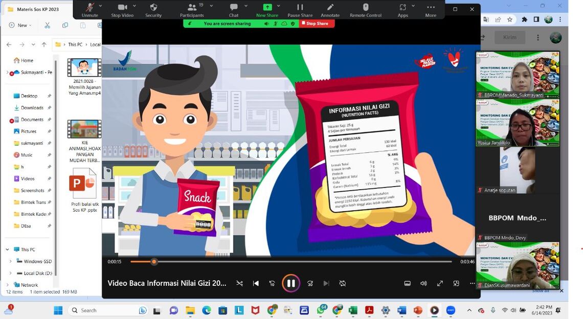 Dalam upaya memantau kiprah Kader Keamanan Pangan Desa perlu dilakukan Monitoring Pemberdayaan Kader Keamanan Pangan Desa atau yang sering disebut dengan kegiatan pengawalan dilaksanakan oleh Balai Besar POM di Manado pada Rabu, 14 Juni 2023 secara daring dan diikuti oleh 8 desa dari 5 kabupaten/kota di Sulawesi Utara yaitu Kab. Bolaang Mongondow, Bolaang Mongondow Timur, Kota Bitung, Kabupaten Minahasa dan Kab. Kepulauan Sangihe.