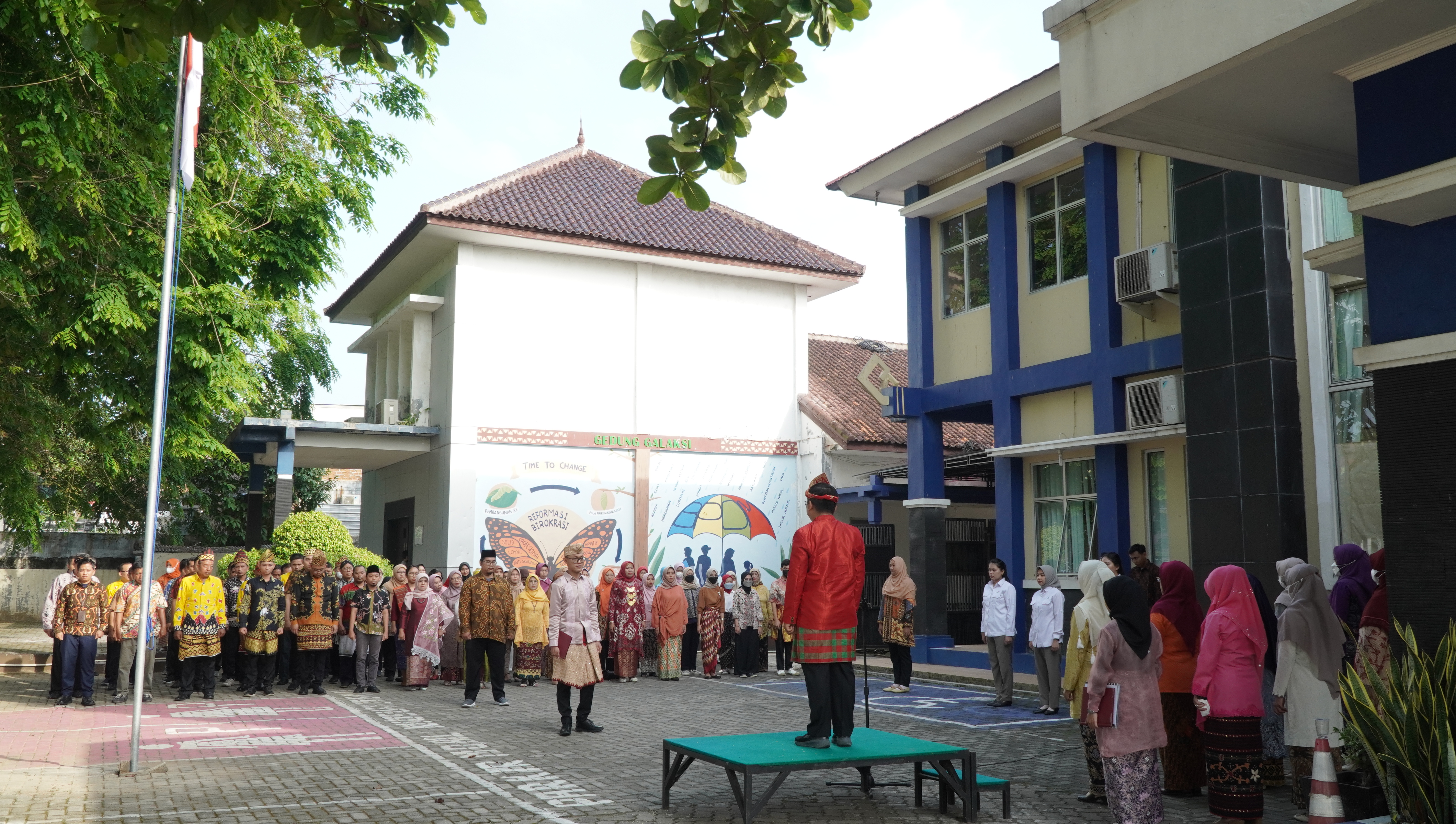 Bandar Lampung—1 Juni adalah salah satu hari terpenting bagi Bangsa Indonesia yang diperingati setiap tahun sebagai Hari Lahir Pancasila. Peringatan Hari Lahir Pancasila Tahun 2023 mengangkat tema “Gotong Royong untuk Membangun Peradaban dan Pertumbuhan Global”. Balai Besar POM di Bandar Lampung turut serta dalam memperingati Hari Lahir Pancasila dengan melaksanakan Upacara Bendera pada tanggal 01 Juni 2023, di Halaman Kantor BBPOM di Bandar Lampung. Kegiatan upacara dihadiri oleh seluruh pegawai dan Plt. BBPOM di Bandar Lampung, Drs. Zamroni, Apt sebagai inspektur upacara. Upacara berlangsung dengan khidmat dan lancar.