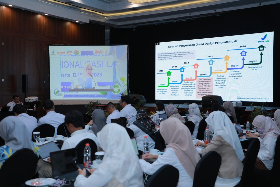 Yogyakarta - BPOM menggelar Workshop Grand Design Penguatan Laboratorium Pengawasan Obat dan Makanan serta Launching Konsep Baru Regionalisasi Laboratorium. Kegiatan yang berlangsung dua hari pada Kamis-Jumat (13-14/07/2023) ini bertujuan memperkuat laboratorium BPOM dalam menghadapi tantangan pengawasan obat dan makanan di masa depan.