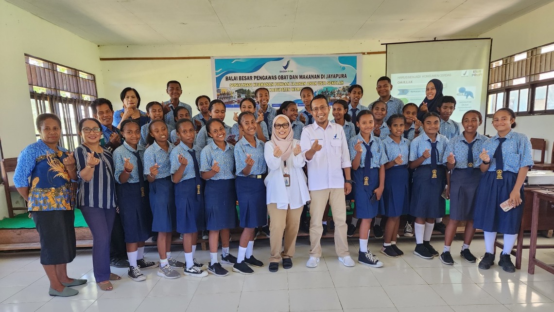 Pelaksanaan sosialisasi ini diikuti peserta gabungan guru dan siswa dengan jumlah peserta sebanyak 180 orang dari 6 sekolah yaitu SD Negeri Usaiwa, SD Advent Urfas, SMP Negeri Urfas, SMP YPK Alfa Omega, SMA Negeri Urfas dan SMK Negeri 2 dengan narasumber dari INFOKOM dan materi yang diberikan yaitu Mengenal dan Memilih Pangan Aman, Pengenalan Bahaya Pangan serta Tips Konsumsi Pangan Aman dengan Cek KLIK dan Memperhatikan Informasi Nilai Gizi