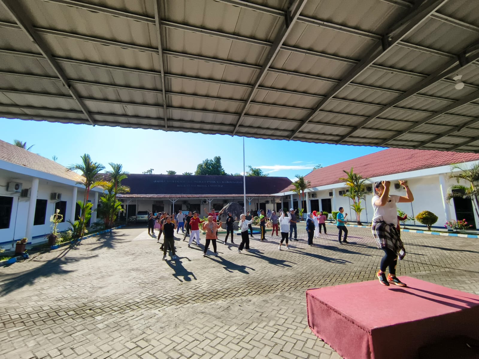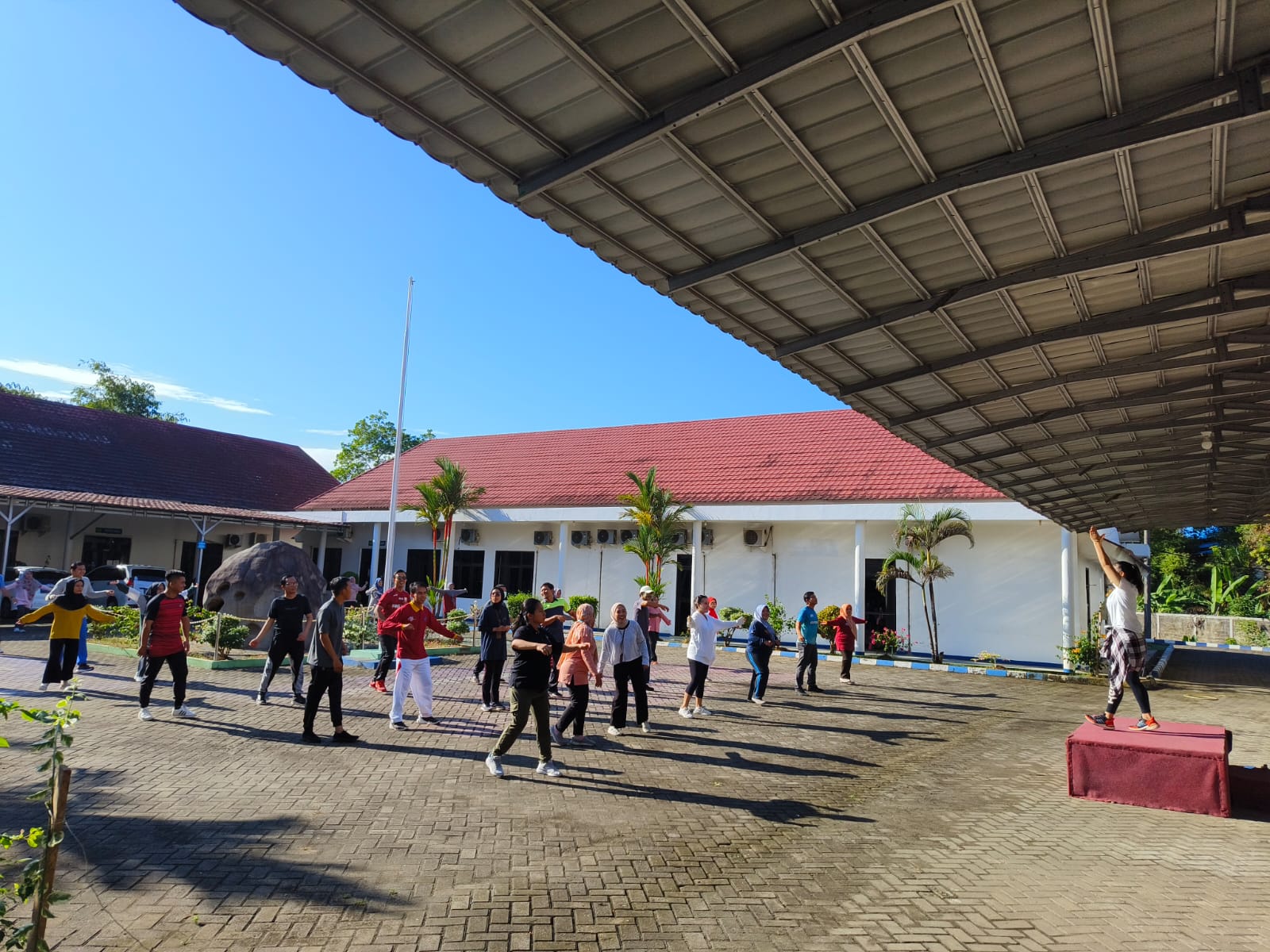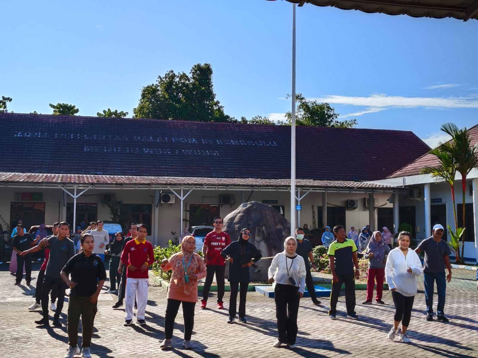 Bengkulu (9/6/23), kegiatan rutin Balai POM di Bengkulu untuk sehat dan bugar di hari krida terus dilakukan, kali ini dengan melaksanakan senam bersama yang dilakukan di halaman kantor Balai POM di Bengkulu. Mengundang instruktur profesional dari Dessi Studio Bengkulu, Ravabel Cahaya Putri memimpin senam dengan penuh semangat dan antusias yang diikuti oleh seluruh karyawan/karyawati BPOM di Bengkulu.