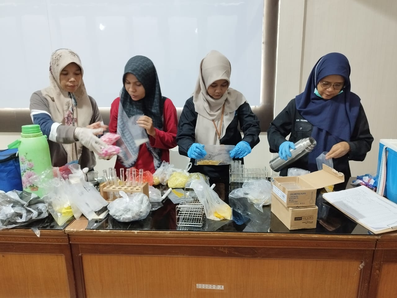 Tim BBPOM Padang, meninjau sekaligusPendampingan pengambilan contoh dan pengujian oleh petugas pengawas pasar pada Jumat (26/5). Tim BBPOM Padang berkunjung ke Kota Serambi Mekkah dalam rangkaian Moitoring dan evaluasi Pasar Aman Berbasis Komunitas pada pasar Padang panjang yang diintervensi pada tahun 2023 yang merupakan Program Inisiasi Badan POM.