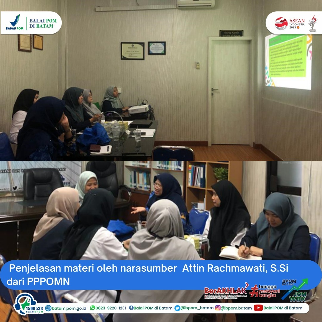 Dalam rangka meningkatkan kompetensi personel di laboratoritorium OTSKK (Obat Tradisional, Suplemen Kesehatan dan Kuasi), Balai POM di Batam melaksanakan pelatihan internal (In House Training) dengan judul “Identifikasi dan Penetapan Kadar EG (Etilen Glikol) dan DEG (Dietilen Glikol) dalam Obat Tradisional dan Suplemen Kesehatan Sediaan Cair secara GC-MS (Gas Chromatography–Mass Spectrometry) selama 5 (lima) hari yaitu pada tanggal 22 – 26 Mei 2023. Pelatihan ini diikuti oleh seluruh personel laboratorium OTSKK Balai POM di Batam yang berjumlah 5 orang dengan menghadirkan narasumber atau pelatih yaitu Attin Rachmawati, S.Si dari PPPOMN (Pusat Pengembangan Pengujian Obat dan Makanan Nasional) Badan POM.