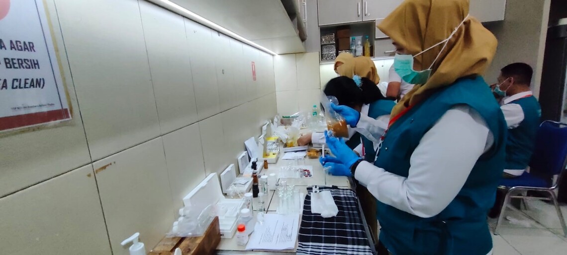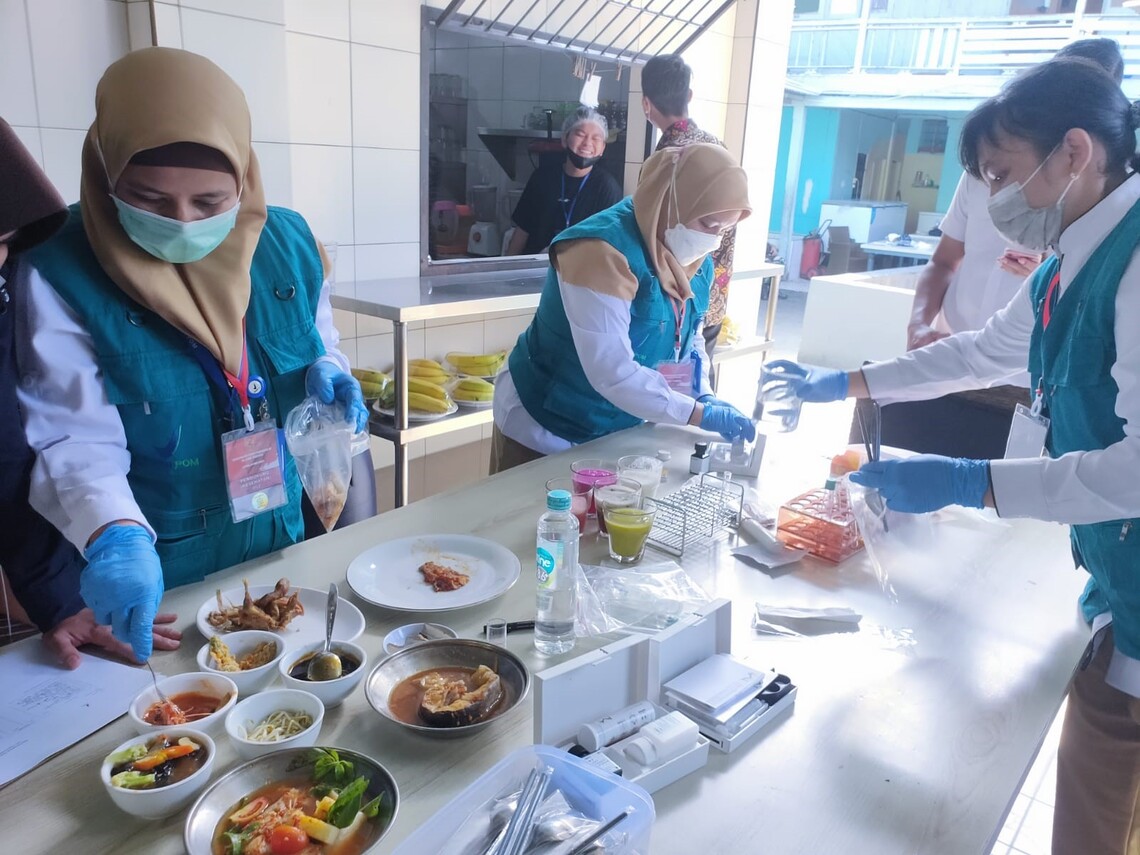 Kepala Balai POM Jambi, Alex Sander memantau langsung kegiatan food security yang dilaksanakan di Bandara Sultan Thaha Syaifuddin Jambi dan RM Pondok Kelapa terhadap menu utama dan menu pendamping yang disajikan pada hidangan VVIP. Dari 86 sampel di Bandara Sultan Thaha Syaifuddin Jambi dan 22 sampel di RM Pondok Kelapa dinyatakan aman dari cemaran bahan kimia dan bahan berbahaya yang disalahgunakan.
