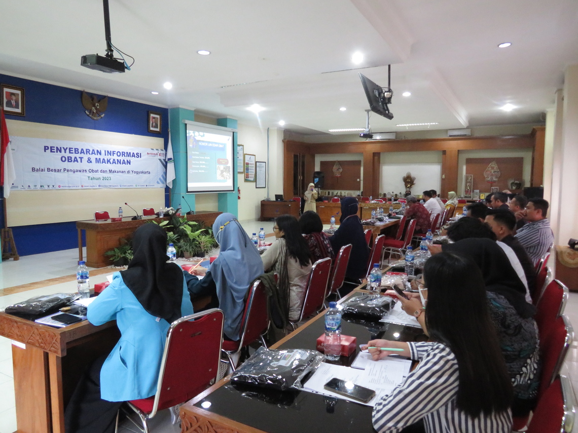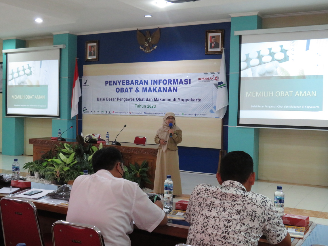 Hari Selasa (13/6) dilaksanakan kegiatan penyebaran informasi dengan mengundang pelaku usaha, lintas sektor, organisasi masyarakat dan masyarakat umum. Pelaksanaan penyebaran informasi berlangsung selama setengah hari di Aula BBPOM di Yogyakarta. Acara dibuka oleh Plt Kepala BBPOM di Yogyakarta, Ani Fatimah Isfarjanti yang menyampaikan bahwa obat atau sering disebut produk terapetik merupakan produk farmasi yang sangat besar artinya bagi Kesehatan. Promosi produk yang berlebih melalui berbagai media termasuk jejaring sosial yang disertai dengan testimoni yang berlebihan akan sangat mempengaruhi pola konsumsi masyarakat. Masyarakat perlu ditingkatkan pengetahuan dan awarenessnya terhadap produk obat agar dapat membentengi diri dari penggunaan produk obat yang tidak memenuhi syarat keamanan, khasiat dan mutu yang beisiko terhadap kesehatan.
