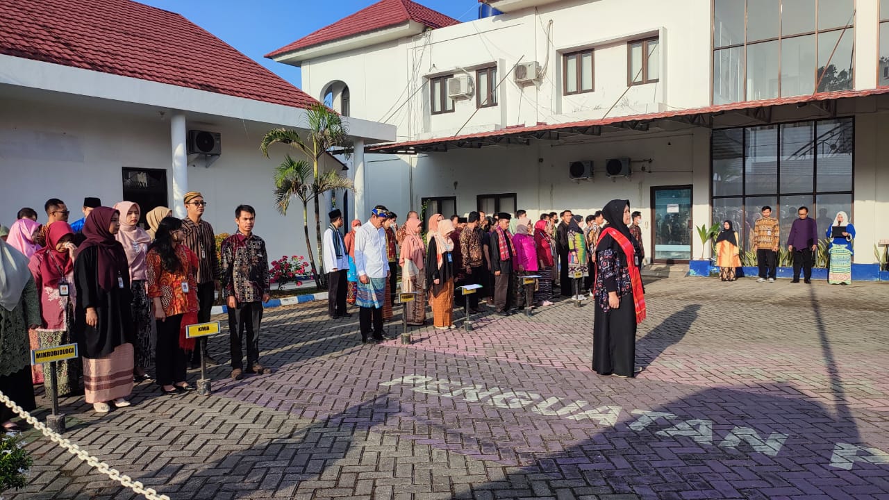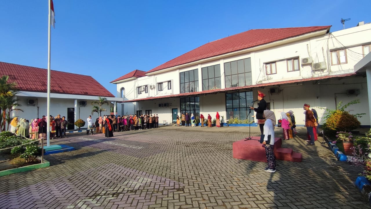Bengkulu, (01/06/2023) Dalam rangka Peringatan Hari Lahir Pancasila BPOM di Bengkulu melaksanakan Upacara di Lapangan Kantor Balai POM di Bengkulu. Semua perserta Upacara mengenakan pakaian khas dari berbagai daerah. Bertindak sebagai Inspektur Upacara Kepala Balai POM di Bengkulu Yogi Abaso Mataram, S.Si,Apt membacakan sambutan Presiden Republik Indonesia Joko Widodo, dengan Tema “Gotong Royong Membangun Peradaban dan Pertumbuhan Global” Presiden menyampaikan :