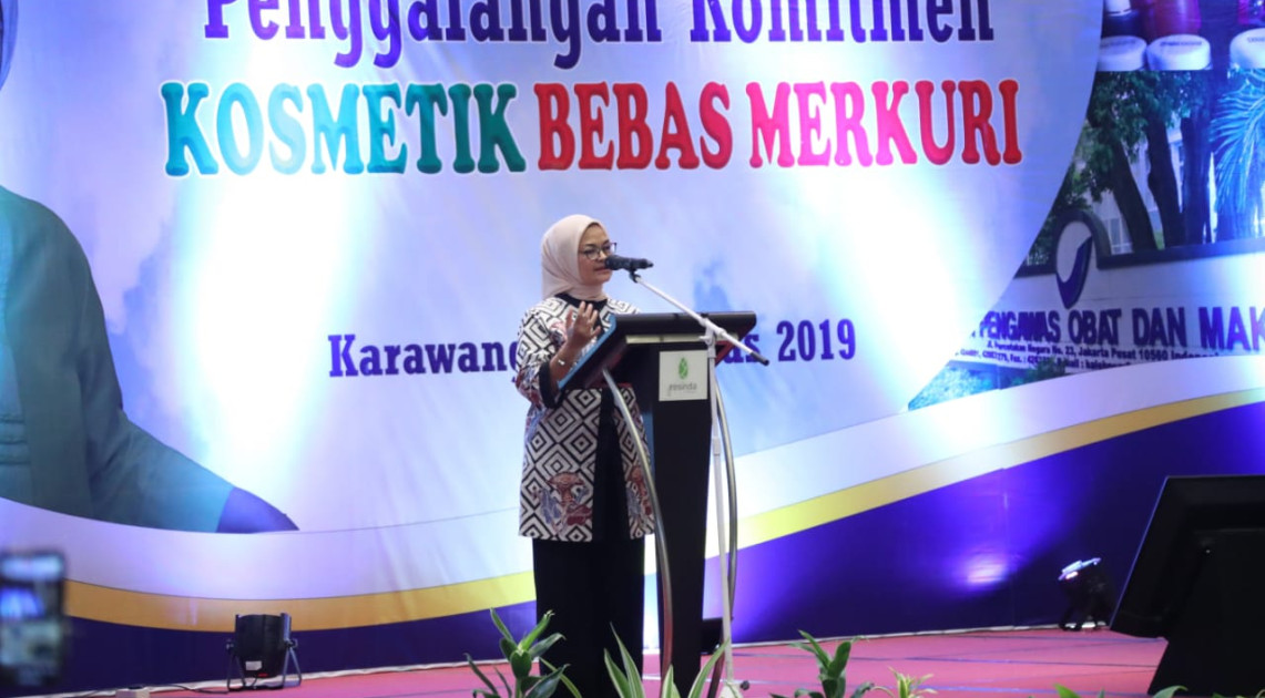 Karawang - Kepala Badan POM RI, Penny K. Lukito bersama generasi milenial Karawang nyatakan komitmen untuk tolak produk kosmetik mengandung merkuri. Komitmen ini disampaikan pada acara Penggalangan Komitmen Kosmetik Bebas Merkuri yang dilaksanakan di Karawang, Selasa (27/08).