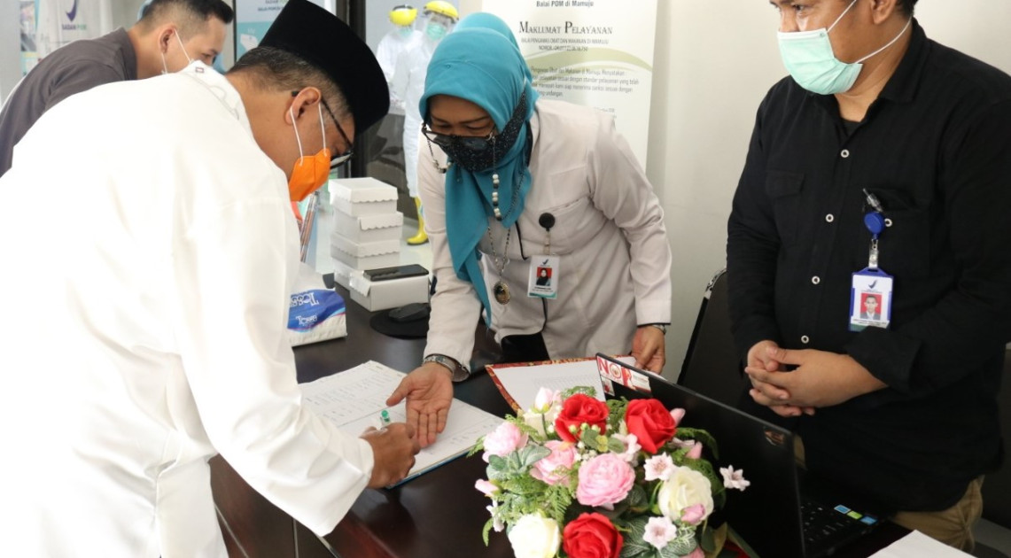 Mamuju - “Kami bersyukur dengan adanya RT-PCR di laboratorium Balai POM di Mamuju, jadi sekarang tidak perlu kemana-mana lagi. Jika ada masyarakat yang membutuhkan, bisa langsung tes di sini”. Ungkapan apresiasi tersebut disampaikan oleh Gubernur Sulawesi Barat, Ali Baal Masdar saat menghadiri secara langsung pelaksanaan pengujian perdana spesimen COVID-19 di Balai POM di Mamuju, Jumat (12/06).