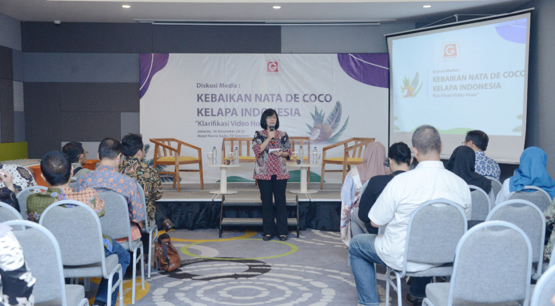 Nata de coco merupakan pangan yang dibuat dari bahan baku air kelapa yang dalam proses pembuatannya dihasilkan serat selulosa yang baik untuk pencernaan. Isu kandungan plastik dalam nata de coco tidak benar dan sangat merugikan masyarakat, terutama pelaku usaha nata de coco yang sebagian besar produsen lokal. “Produk nata de coco dengan nomor izin edar dalam negeri sebesar 69,6% dibandingkan produk impor 30,3%, sehingga yang paling besar terdampak dengan adanya isu ini yakni produk lokal,” jelas Ema Setyawati.