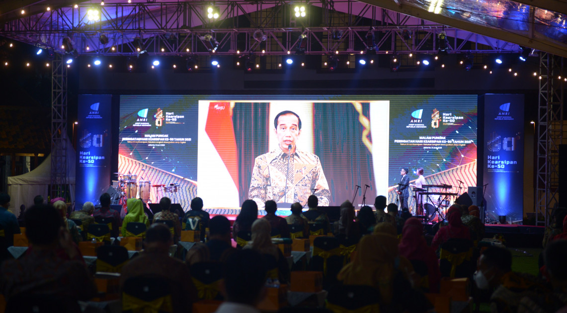 Pada kesempatan tersebut, Presiden RI Joko Widodo turut menyampaikan pesan secara virtual mengenai pentingnya inovasi dalam pengelolaan kearsipan. Terlebih di era digital saat ini, sistem kearsipan perlu mengedepankan pengelolaan yang efisien, kemudahan akses, dan kecepatan dalam pencarian arsip. “Cara-cara lama pengarsipan harus mulai ditinggalkan. Pengelolaan arsip harus dilakukan dengan memanfaatkan teknologi digital”, terang Presiden Jokowi.
