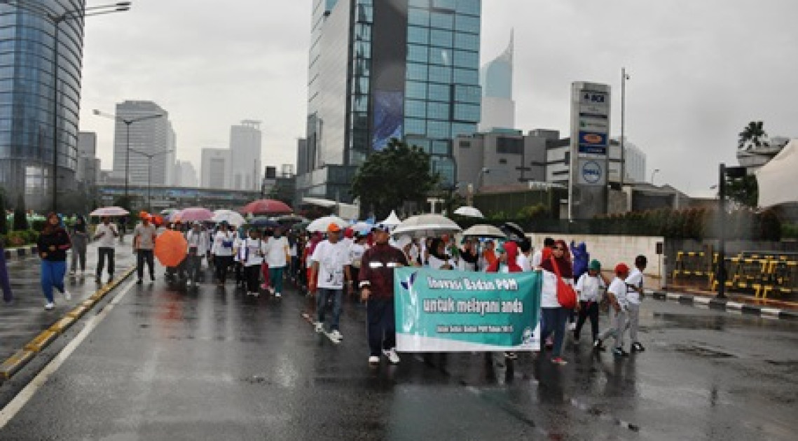 Hujan deras yang turun di Jakarta, Minggu (1/2/2015) tidak melunturkan semangat Kepala Badan POM, Roy Sparringa dan seluruh warga Badan POM untuk menyambangi Car Free Day (CFD) di Jalan MH. Thamrin dan sekitarnya. Sejak pukul 05.00 WIB, panitia dan para peserta jalan sehat yang terdiri dari pejabat, karyawan, dan masyarakat mulai berdatangan dan berkumpul di titik pertemuan.