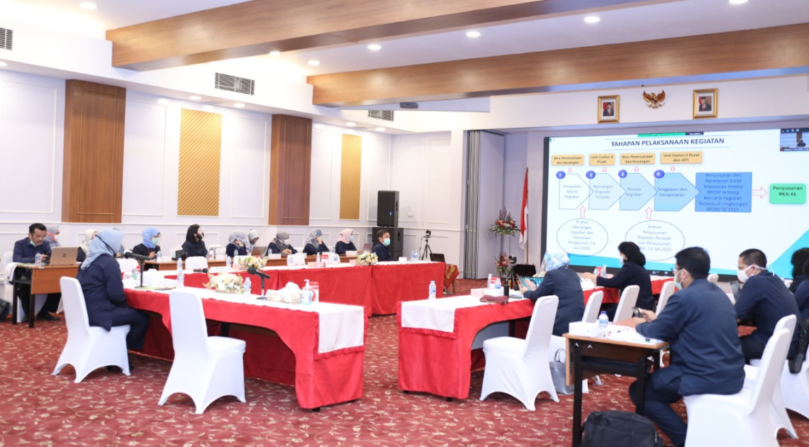 Jakarta – Badan POM menyelenggarakan Sosialisasi Mekanisme Penganggaran Kegiatan Terpadu di serta Penyusunan Rencana Kerja dan Anggaran (RKA-KL), Senin (13/07). Dihadiri oleh seluruh Kepala Unit Pusat dan Kepala Balai Besar/Balai POM/Kantor Badan POM di Kabupaten/Kota di seluruh Indonesia secara virtual, sosialisasi ini merupakan satu tahapan yang harus dilalui sebelum penyusunan RKA-K/L di setiap satuan kerja di Badan POM.