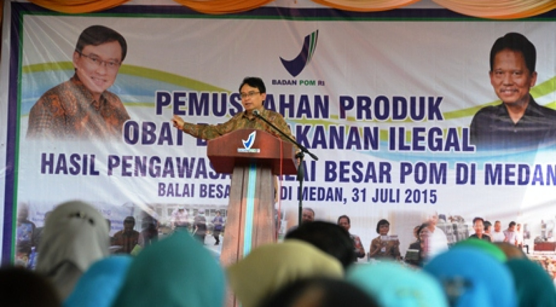 Jumat (31/07), bertempat di halaman kantor Balai Besar POM (BBPOM), Jl. Willem Iskandar, Pasar V Barat I No.2, Medan Estate, Kepala Badan POM bersama Kepala BBPOM di Medan, didampingi Perwakilan Pemerintah Provinsi Sumatera Utara, Kepolisian Daerah, Kejaksaan Tinggi Sumatera Utara, Kepala Dinas Kesehatan, serta Kepala Dinas Perdagangan Provinsi Sumatera Utara melakukan pemusnahan Obat dan Makanan ilegal hasil pengawasan BBPOM di Medan selama tahun 2014.