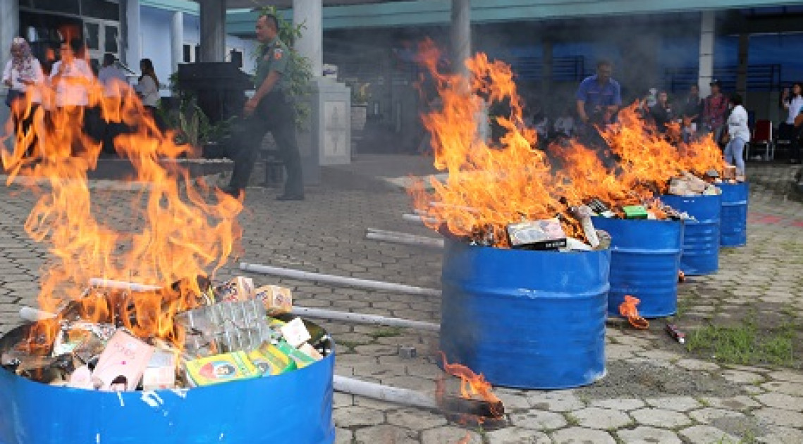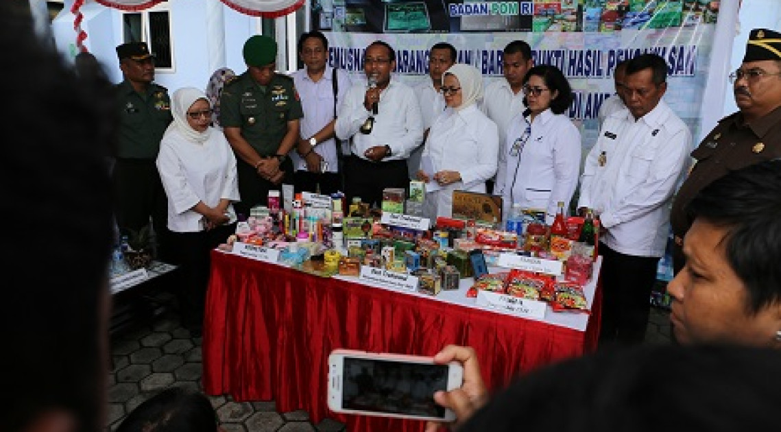 Terhadap produk Obat dan Makanan ilegal hasil pengawasan Badan POM yang telah mendapat putusan pengadilan, dilakukan pemusnahan untuk memastikan produk tersebut tidak lagi beredar di masyarakat. HM-Benny.