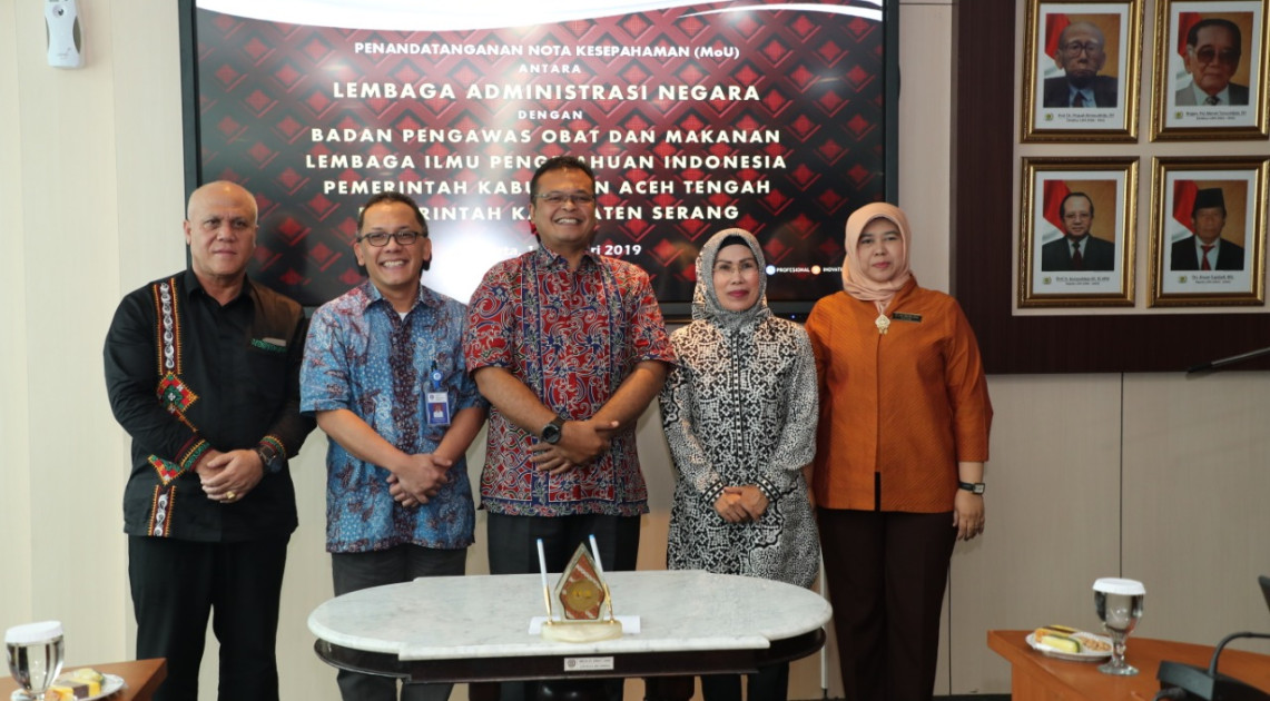 Selain dengan BPOM, pada kesempatan ini LAN juga melakukan penandatanganan kerja sama dengan LIPI, Pemerintah Kabupaten Aceh Tengah, dan Pemerintah Kabupaten Serang.