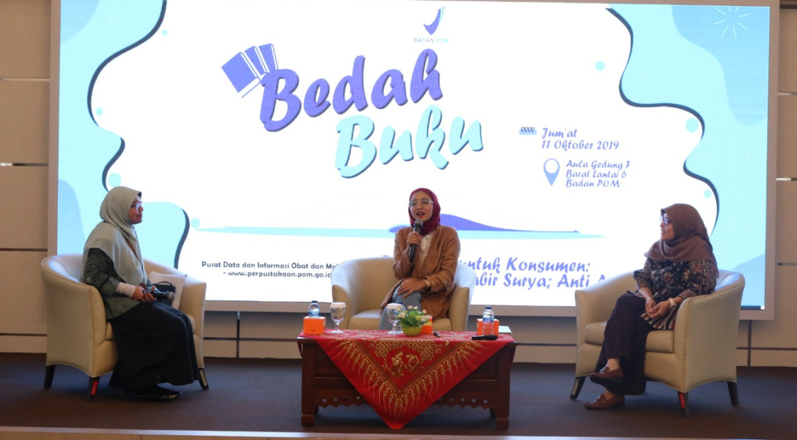 Di era keterbukaan informasi, hasil pengawasan Obat dan Makanan diharapkan dapat menjangkau seluruh masyarakat. Diseminasi informasi menjadi hal yang penting, salah satunya melalui buku hasil kajian BPOM. Menjawab kebutuhan tersebut, Perpustakaan Badan POM yang berada dibawah Pusat Data dan Informasi Obat dan Makanan mengadakan acara Bedah Buku Badan POM pada Jumat, 11 Oktober 2019 untuk mengkaji Buku Pedoman untuk Konsumen: Kosmetika Tabir Surya dan Anti-Aging. Kegiatan berupa Talkshow yang menghadirkan pakar dalam penggunaan kosmetika.