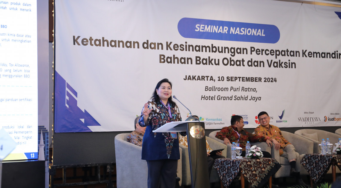 Emmy Suryandari dari Kementerian Perindustrian menjelaskan mengenai laju pertumbuhan industri farmasi yang perlu diiringi dengan perkembangan industri bahan baku obat. “Lebih dari 90% bahan baku yang digunakan industri farmasi nasional masih harus impor, terutama dari Tiongkok dan India. Pemerintah telah membuat berbagai inisiatif, seperti skema insentif dan kebijakan non-fiskal, bagi industri yang menggunakan bahan baku obat dalam negeri,” paparnya.
