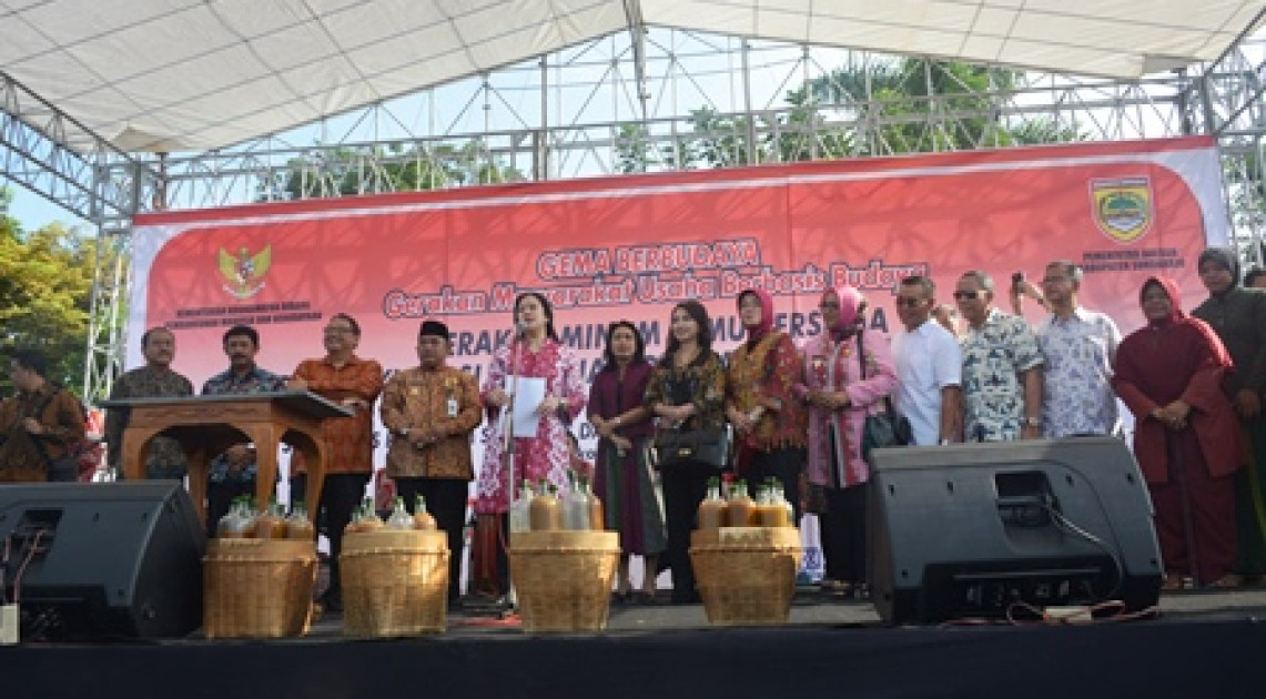 Sebagai salah satu bentuk dukungan pemerintah terhadap pengembangan jamu, Sukoharjo ditetapkan sebagai kabupaten jamu. Dukungan pemerintah juga diwujudkan melalui Gerakan Masyarakat Usaha Berbasis Budaya, yang merupakan gerakan bersama pemerintah dan rakyat membangun usaha rakyat berbasis produk-produk budaya, termasuk jamu. Pada kesempatan ini, pemerintah juga memberikan berbagai macam bantuan kepada pelaku usaha dan industri jamu di Sukoharjo, diantaranya bantuan akte pendirian koperasi, bantuan 100 sepeda sebagai sarana penjualan jamu, dan pemberian dua hak cipta untuk produk jamu.