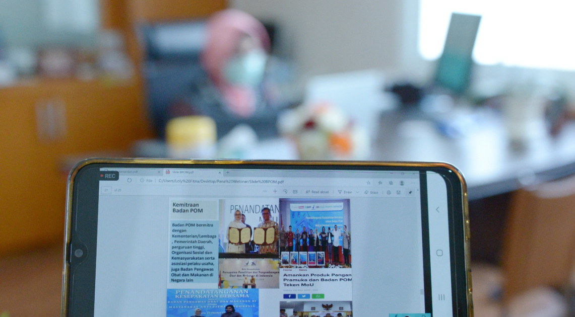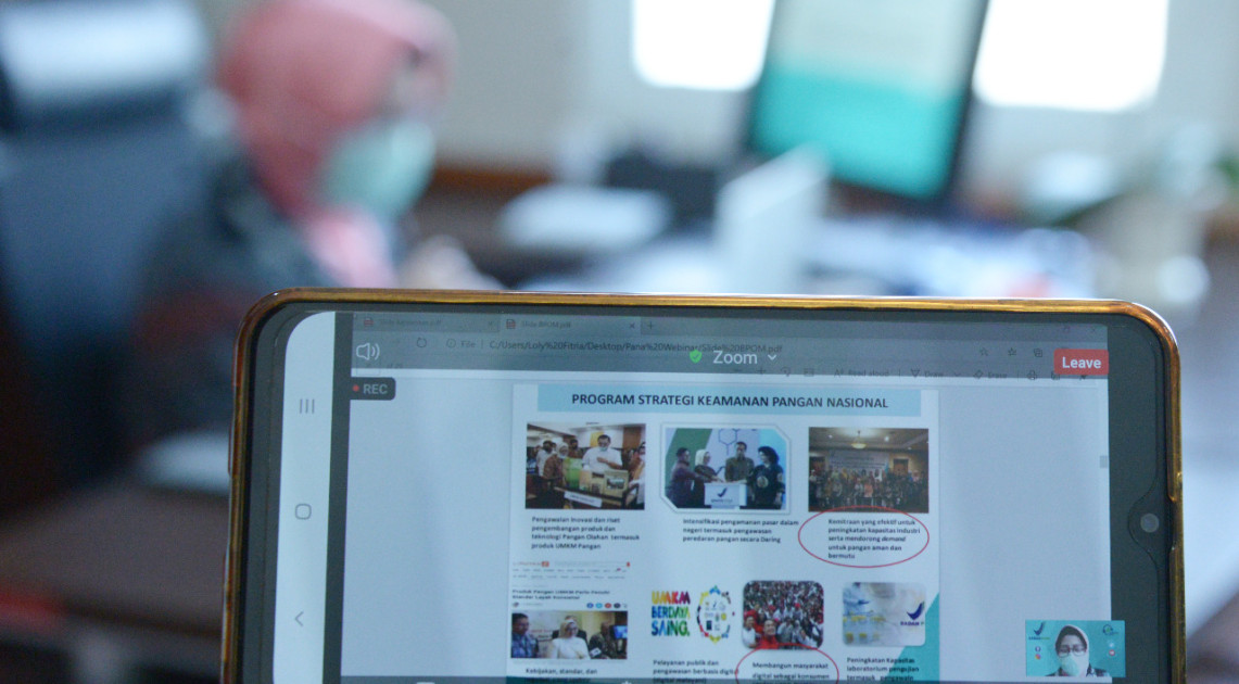 Pada webinar ini, Deputi III secara daring menyampaikan paparan berjudul Kesenjangan Informasi Nutrisi & Kesehatan Pada Masa Pandemi. “Salah satu tugas Badan POM adalah memastikan keamanan pangan yang beredar aman, bermutu dan bergizi untuk dikonsumsi masyarakat,” jelasnya. “Isu mengenai keamanan pangan selalu muncul, untuk itu Badan POM telah dan terus meningkatkan kerja sama dengan mitra Badan POM untuk melakukan pengawasan pangan yang beredar di masyarakat,” lanjutnya.
