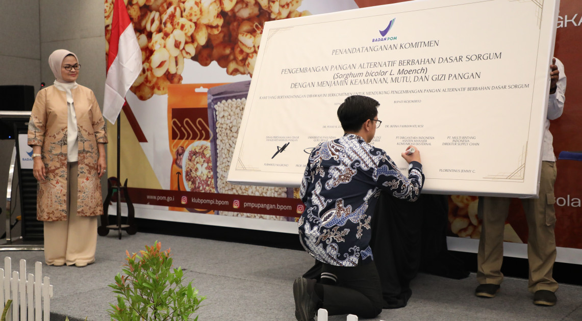 Dalam upaya diversifikasi pangan berbahan sorgum diperlukan adanya pengawalan terhadap jaminan keamanan, mutu, dan gizi dari sisi hulu hingga ke hilir oleh semua pihak termasuk pemerintah. Karena itu, dalam rangkaian sarasehan dilaksanakan penandatanganan komitmen bersama stakeholders terkait pengembangan pangan alternatif berbahan dasar sorgum dengan menjamin keamanan, mutu, dan gizi pangan.